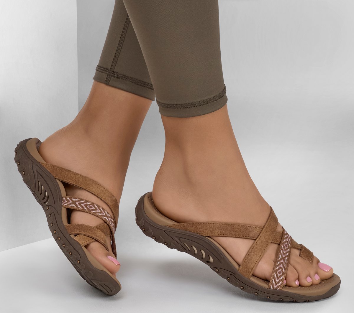 Comfort and breezy style makes a loving pair with Skechers Reggae – Timeless Summer. This outdoor trail toe loop sandal features a vegan leather and geo woven fabric upper, cushioned footbed, and a shock-absorbing Reggae midsole for added support.