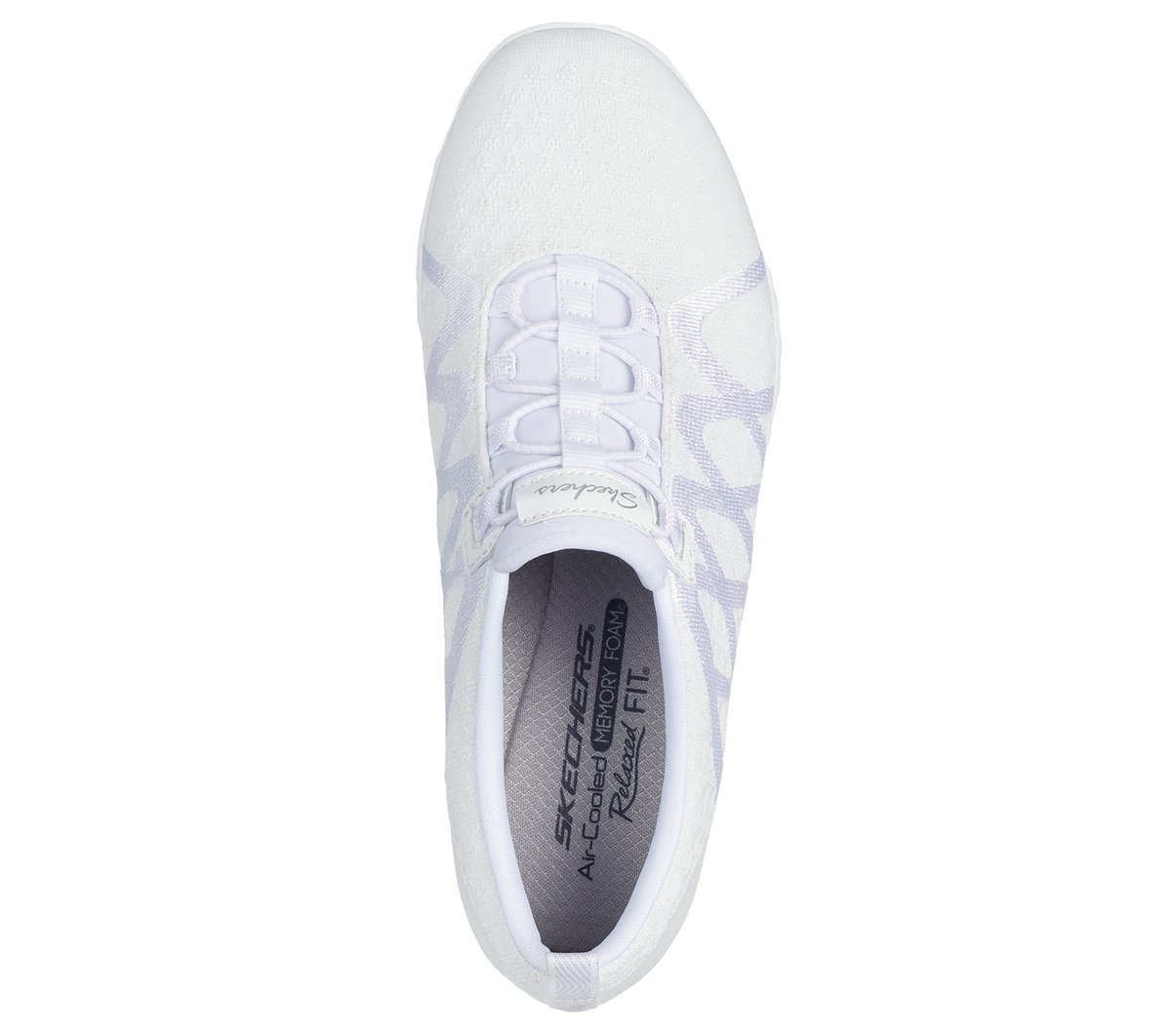 Enjoy your walks in easy-wearing comfort with Skechers Relaxed Fit®: Breathe-Easy – Infi-Knity. This sporty slip-on features a Skech-Knit upper with a stretch-lace front and a cushioned Skechers Air-Cooled Memory Foam® insole.