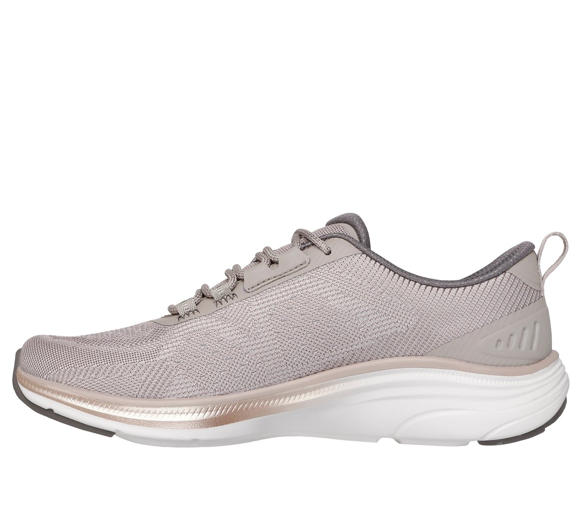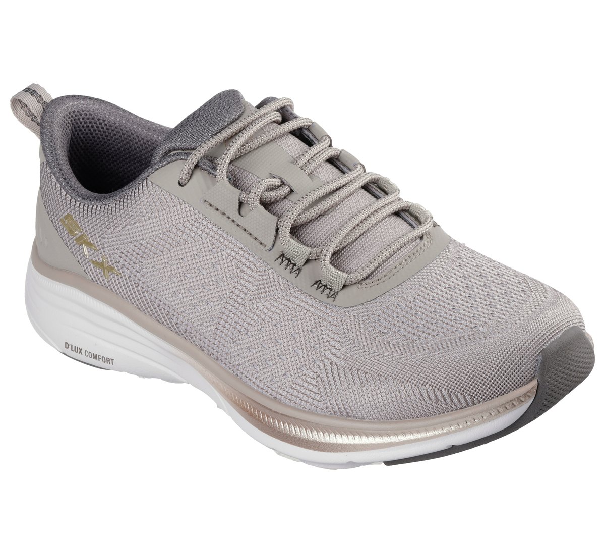 Take it easy in sporty comfort with a bit more room wearing Skechers Relaxed Fit®: D’Lux Comfort 2.0 – Highkey. This roomy vegan style features an engineered mesh upper with metallic detail, a lace-up front, and a cushioned Skechers Air-Cooled Memory Foam® insole.