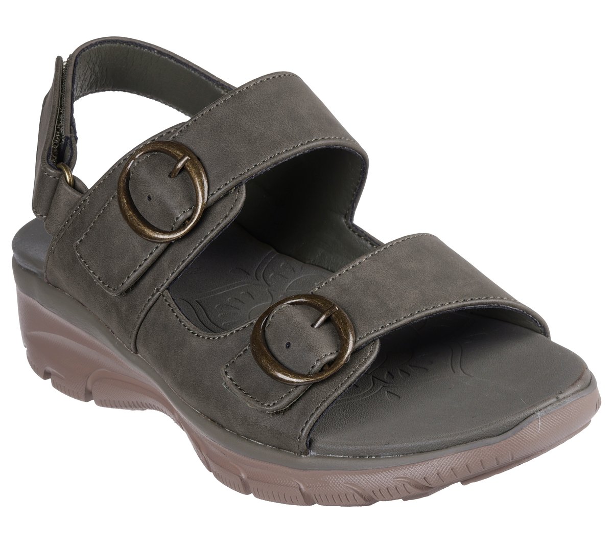 Enjoy sunny-weather comfort with signature comfort in Skechers Relaxed Fit®: Easy Going – Certified Charm. This casual strappy sandal features a vegan leather upper with adjustable hook and loop strap closures and a cushioned Yoga Foam® footbed.