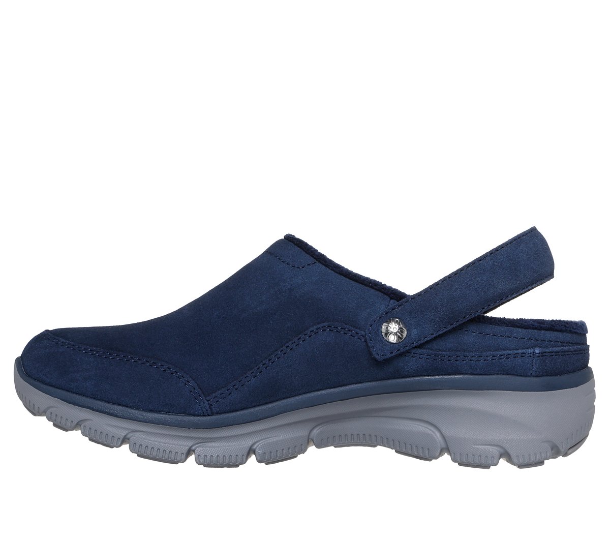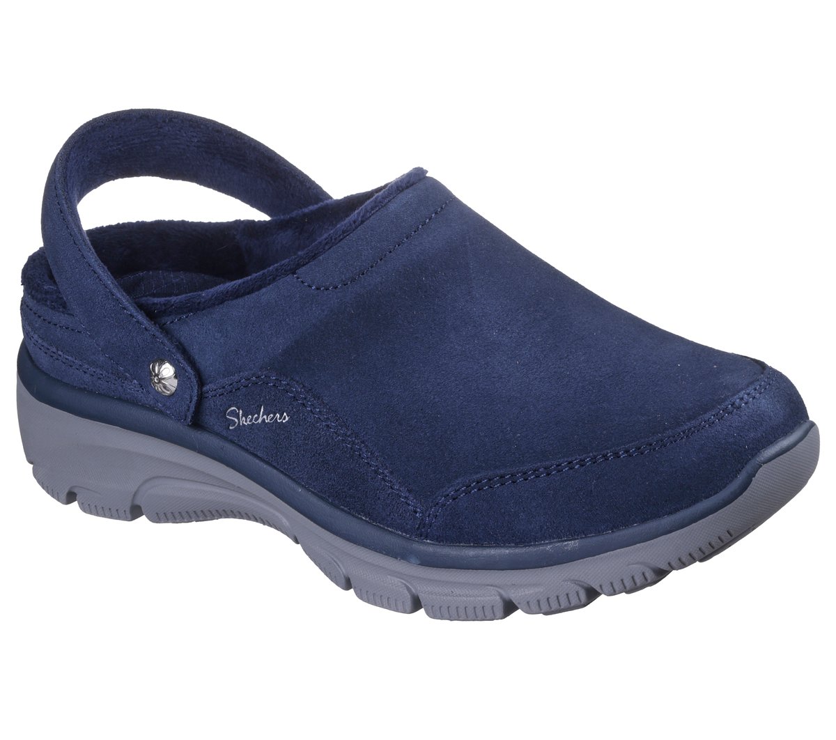 Step into cozy comfort and laid-back style with Skechers Relaxed Fit®: Easy Going – Distinctive Charm. This comfort clog features a 3M® Scotchgard®-treated genuine suede upper with chenille lining, convertible heel strap, and a cushioned Skechers Air-Cooled Memory Foam® footbed.