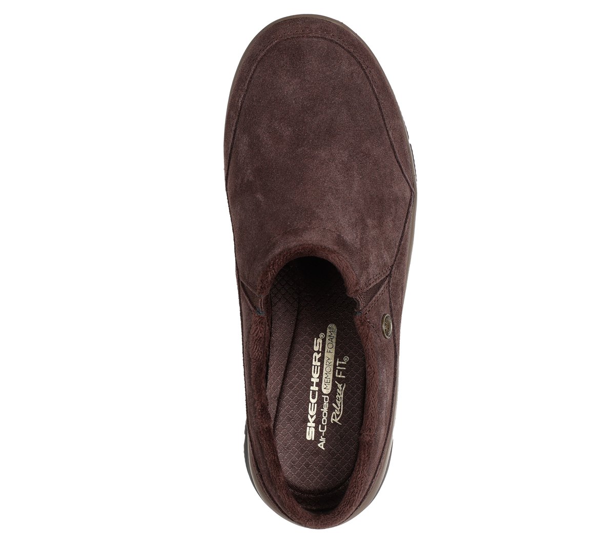 Look forward to cold-weather season in warm comfort with Skechers Relaxed Fit®: Easy Going – Latte 3. This open-back mule style features a 3M® Scotchgard® treated suede upper with soft chenille lining and a cushioned Skechers Air-Cooled Memory Foam® footbed.
