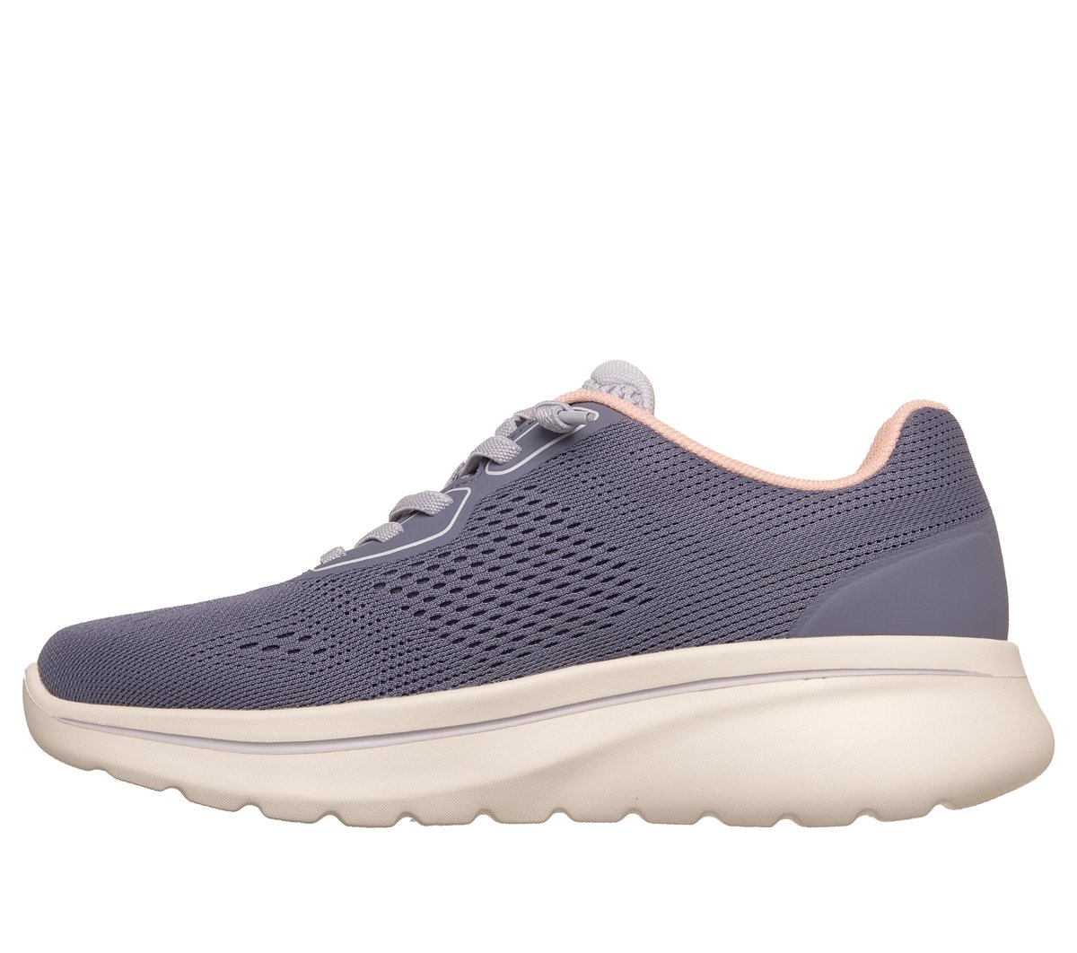 Love the support in your everyday walking style wearing Skechers Relaxed Fit®: GO WALK® Arch Fit® N-Joy – Ellie. This vegan walking slip-on has been granted the APMA Seal of Acceptance and features a roomy engineered mesh upper with tied-off stretch laces and a removable Arch Fit® insole.