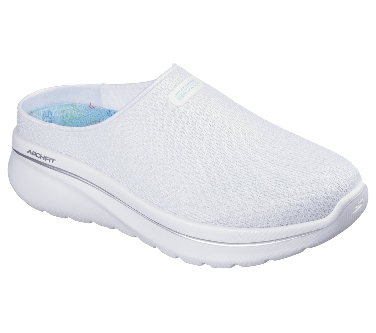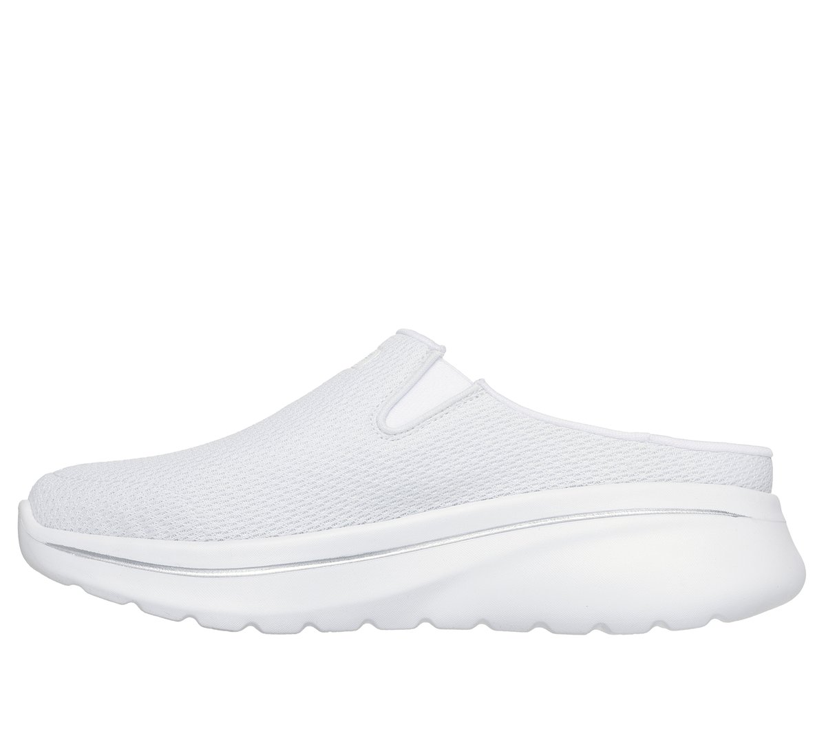 Take well-cushioned comfort with you wherever you go wearing Skechers Relaxed Fit®: GO WALK® Arch Fit® N-Joy – Kaite. This easy-on vegan mule has been granted the APMA Seal of Acceptance and features a roomy mesh upper, ULTRA LIGHT midsole cushioning, and a podiatrist-certified Arch Fit® insole for all-day support.
