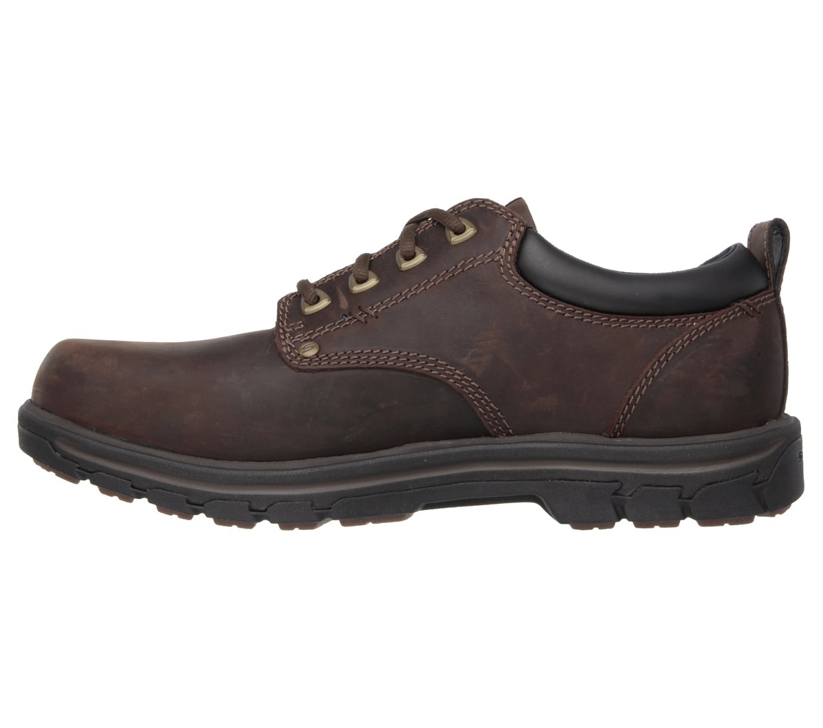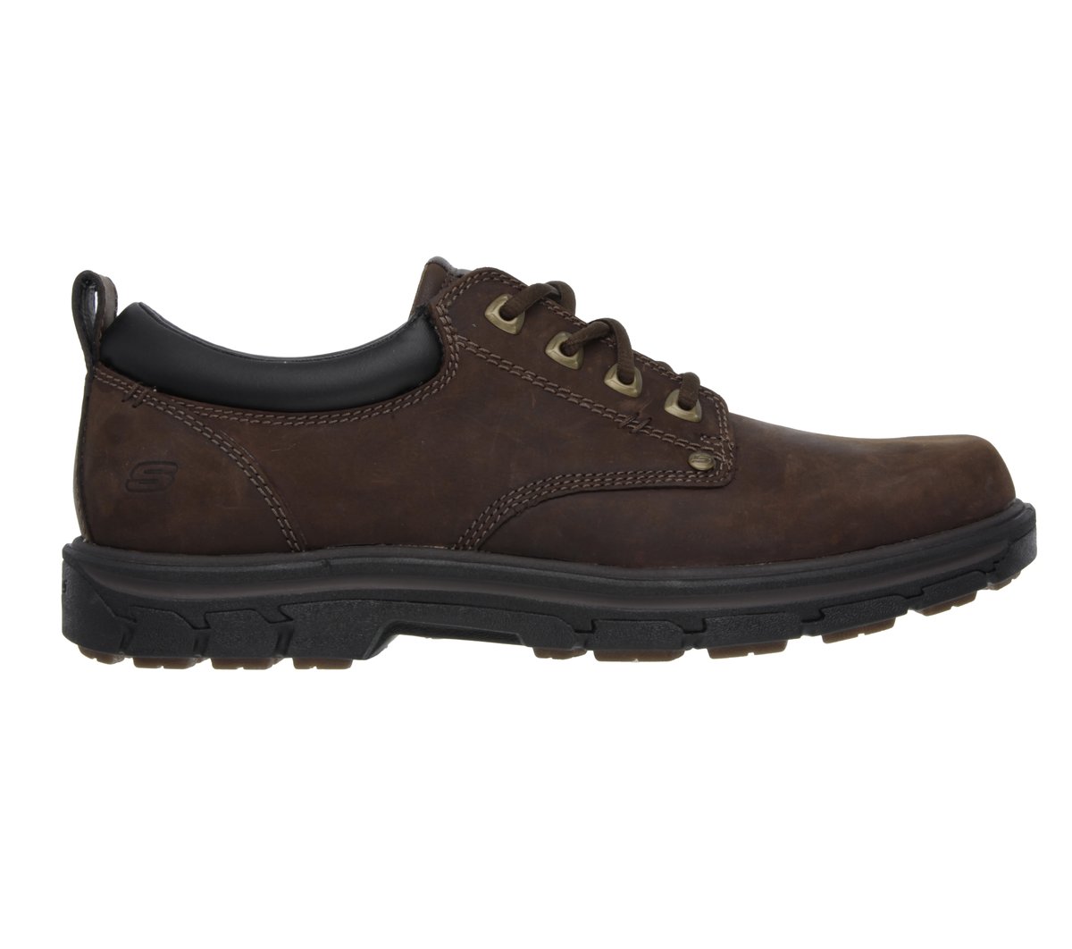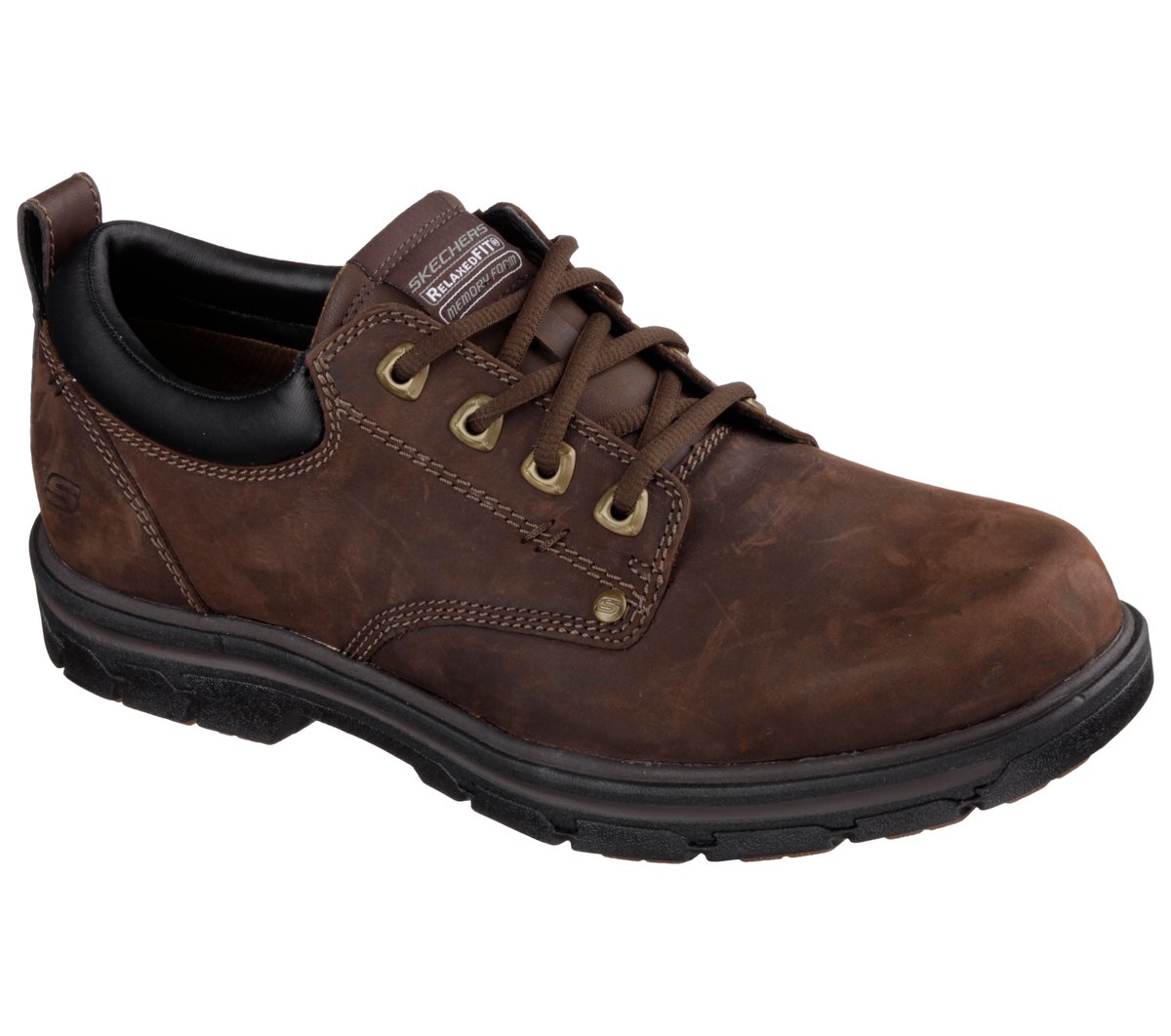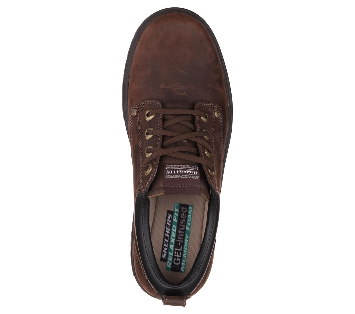 Classic style pairs with amazing comfort in Skechers Relaxed Fit®: Segment – Rilar. Smooth oiled leather upper in a lace-up casual oxford with Gel-Infused Memory Foam insole.