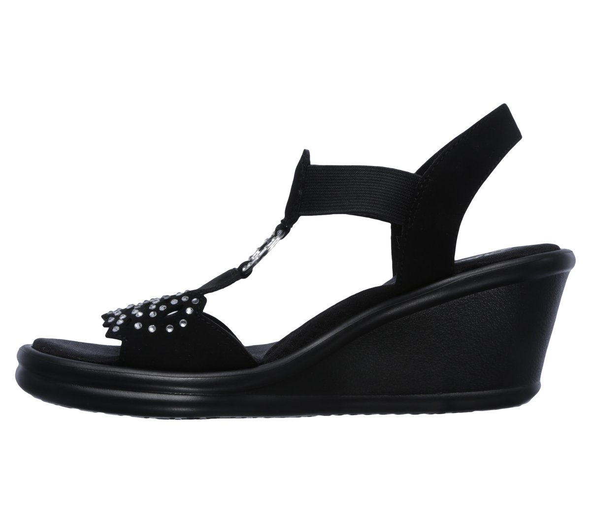 You gotta put a ring on the amazing style of Skechers Cali® Rumblers – Queen B. This casual wedge-heeled slingback slide style features a leather-textured synthetic upper with stretchy instep strap and rhinestone details, plus Memory Foam comfort footbed.