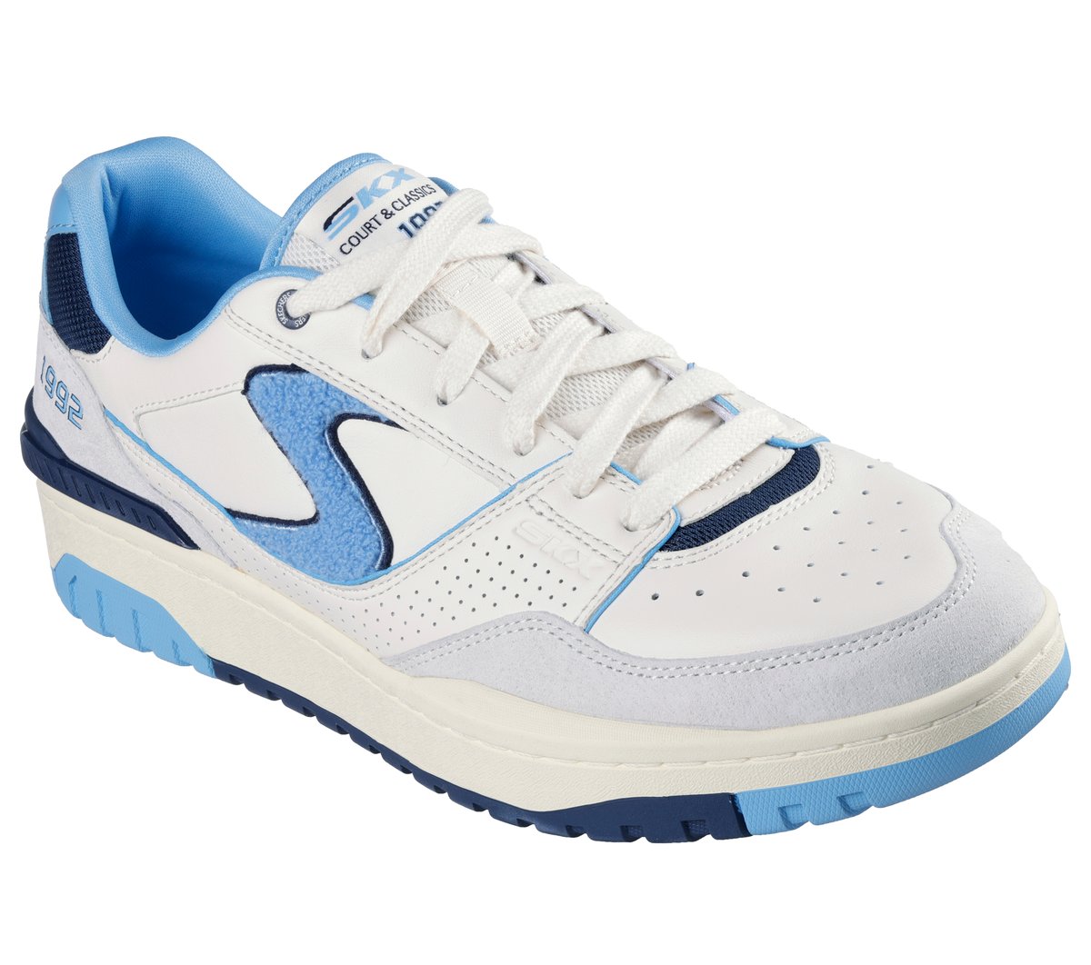 Walk through time in throwback style and classic comfort wearing Skechers S-1992. This retro-inspired lace-up features a leather, pigskin suede, and mesh upper with a chenille logo detail and a cushioned Skechers Air-Cooled Memory Foam® insole.
