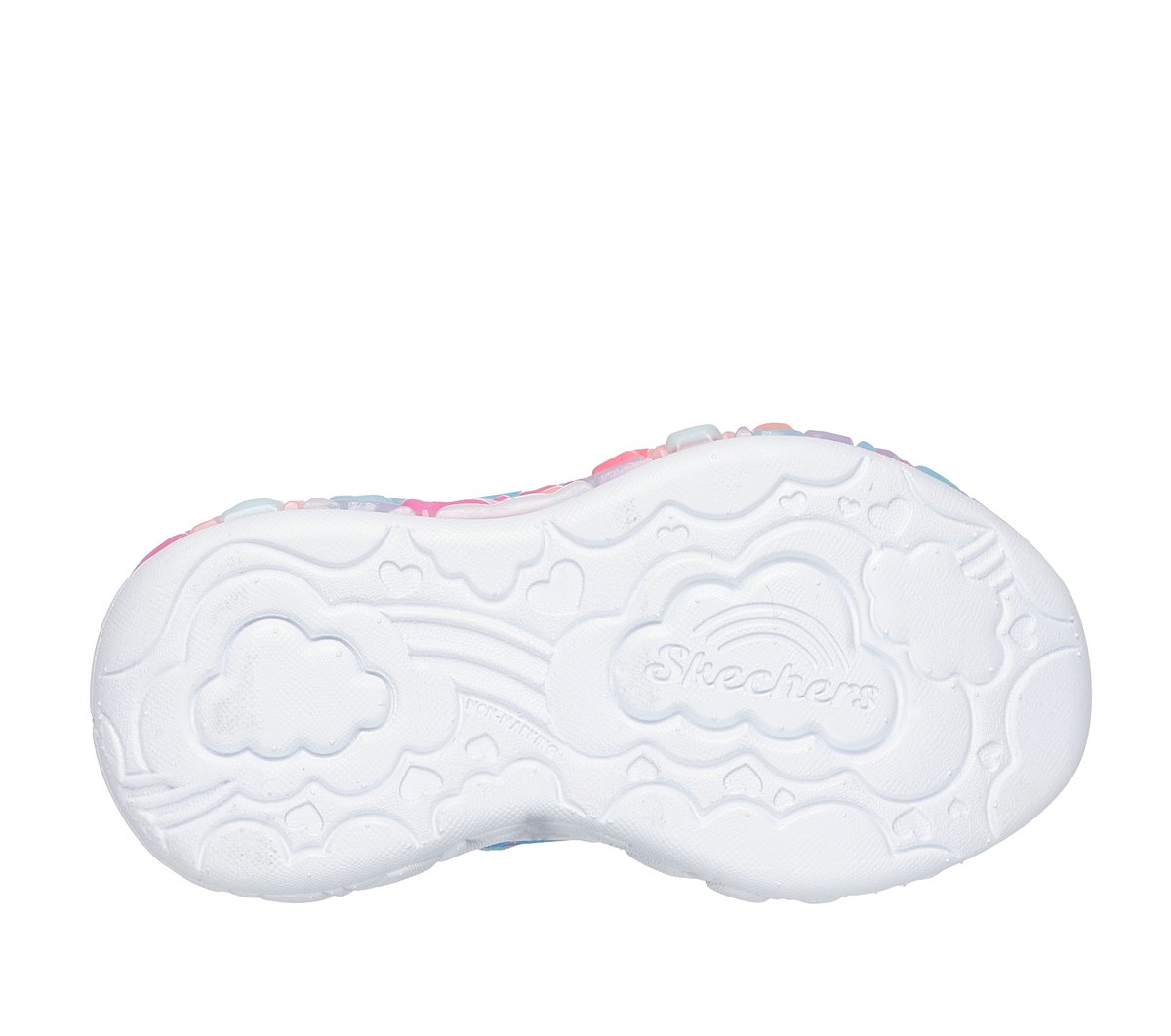 Sporty style gets lit-up and lovable with Skechers S-Lights®: Eternal Heart Lights. This lighted design features a sparkle mesh and synthetic glitter upper with stretch-laced front, and a Skechers adaptive closure.