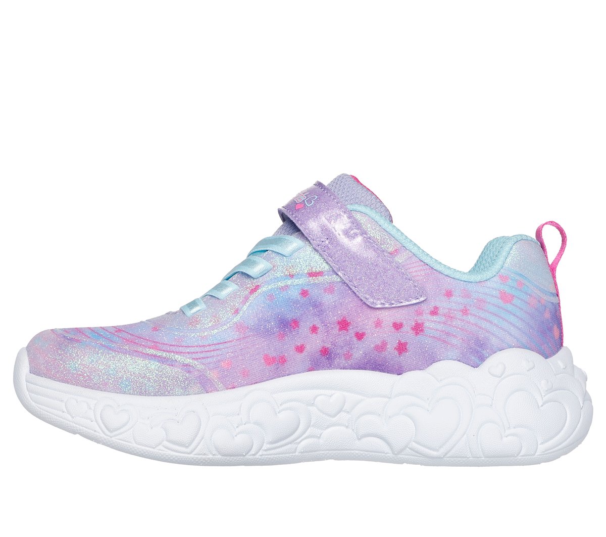 Sporty style gets lit-up and lovable with Skechers S-Lights®: Eternal Heart Lights. This lighted design features a sparkle mesh and synthetic glitter upper with stretch-laced front, and a Skechers adaptive closure.