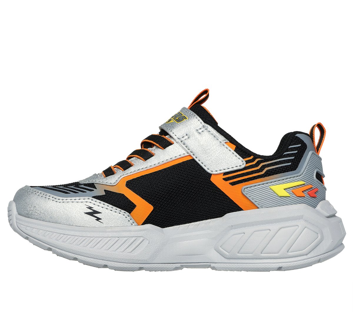 Step with a bolt of comfort and sporty style in Skechers S-Lights®: Light Storm 3.0. This thematic sneaker features a mesh and synthetic upper with a multicolored light-up tech piece midsole, stretch laces, and adjustable instep strap.