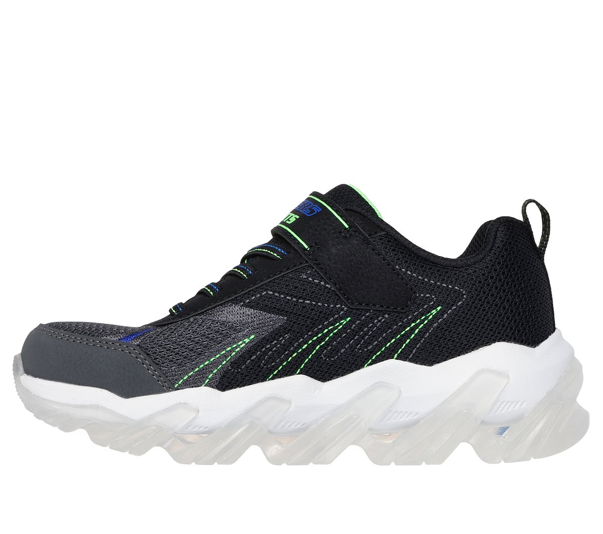 Light up the fun with Skechers S-Lights®: Mega Surge 2.0. This sporty sneaker features a mesh and synthetic upper with embroidered details, Skechers adaptive closure, stretch laces and a shock-absorbing lighted midsole.