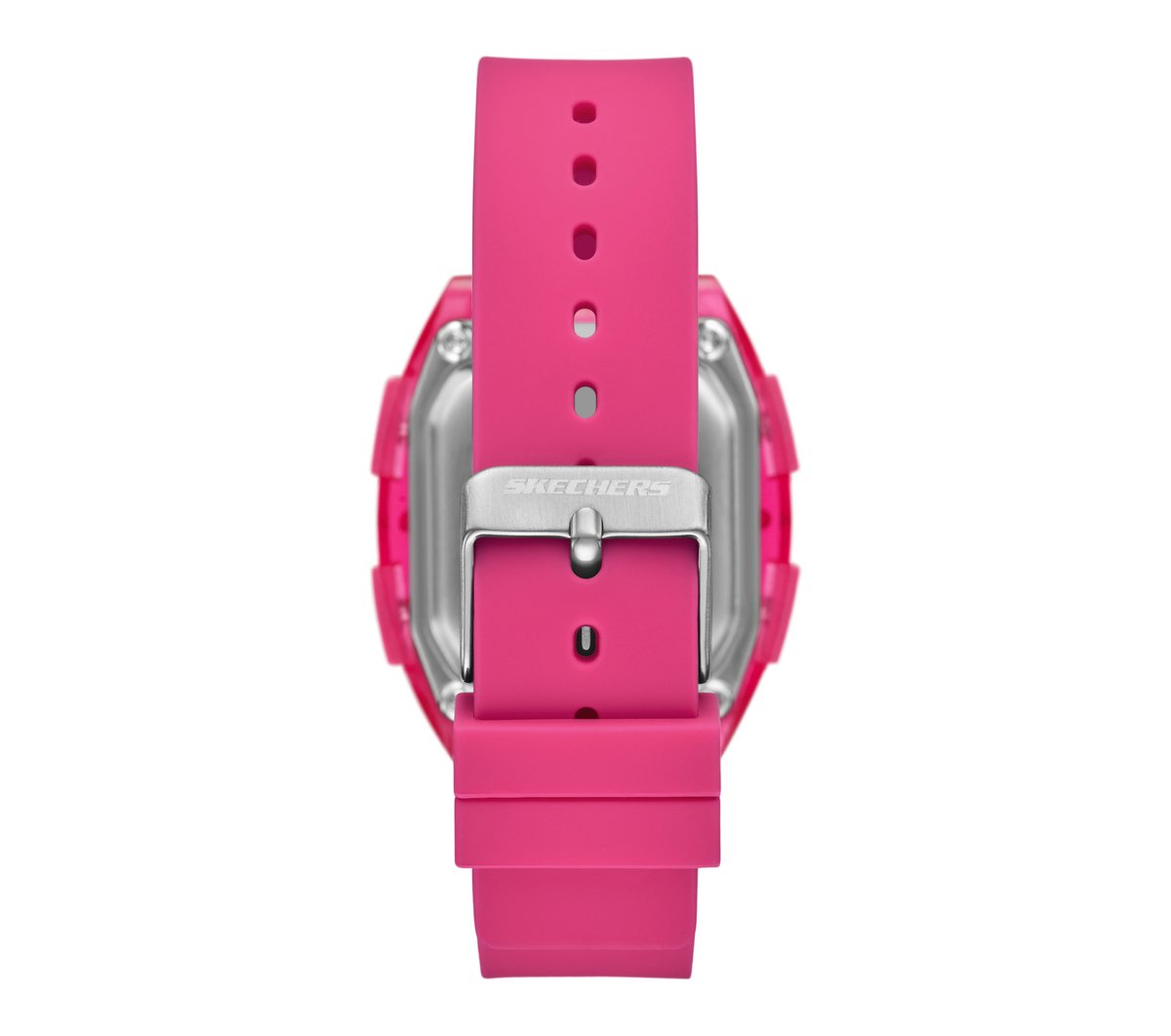 Brighten up your everyday adventures in style with the Skechers Sawtelle Watch. This digital movement design features a 37mm barrel-shaped case with an easy-to-read positive display, a durable mineral crystal lens, and a comfortable purple silicone strap. Water resistant up to 50 meters.