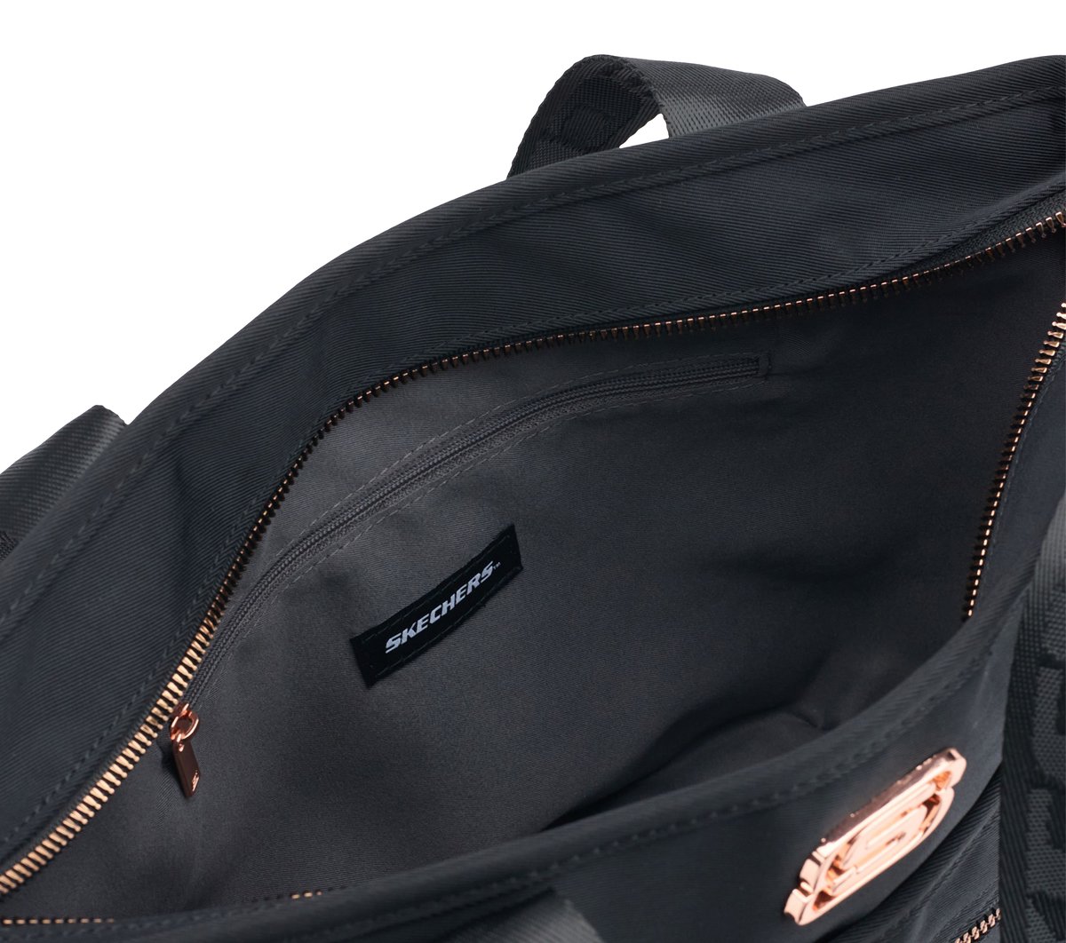 Hit the town with room for everything and then some wearing Skechers Shopper D-Ring Bag. This scooped-bottom tote bag features a zipped main compartment with internal security pocket, a zipped front compartment, woven top handles, plus a detachable and adjustable shoulder strap.