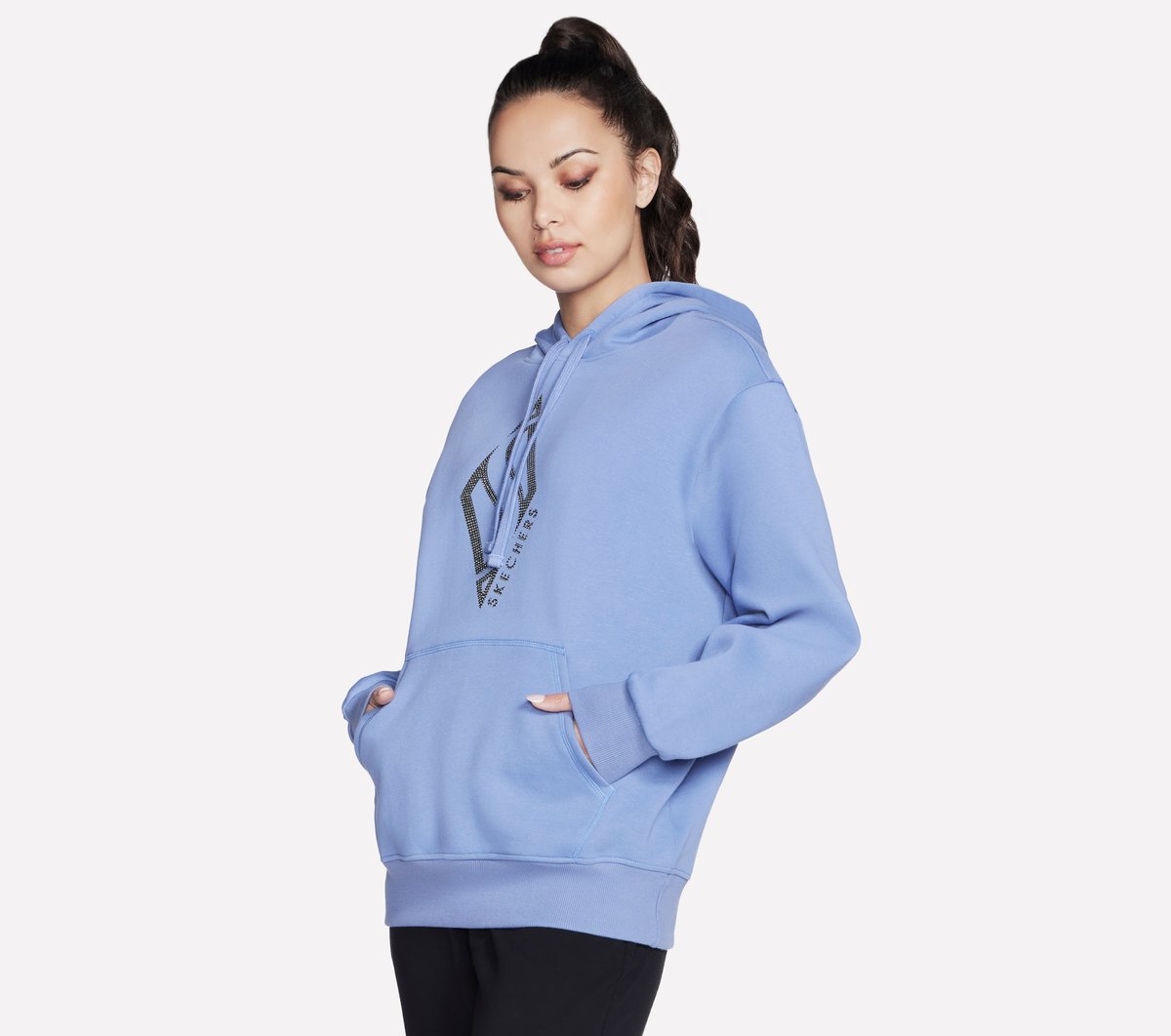 Add a touch of sparkle to your sporty leisure look wearing Skechers SKECH-SWEATS™ Diamond Shine Hoodie. This breathable pullover hoodie is made with heavyweight SKECH-SWEATS™ cotton blend fleece and features a drawstring hood, 2-inch ribbed cuffs and hem, a kangaroo pocket, and a bedazzled Skechers Diamond logo at center chest.