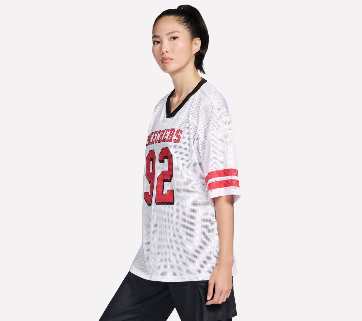 Stay comfortable in throwback style with the classic Skechers 92 Jersey. Crafted from our breathable Skechers GO DRI Breeze Tech™ fabric, this relaxed fit jersey features a V-neck, dropped short sleeves, and a Skechers 92 graphic on center front.