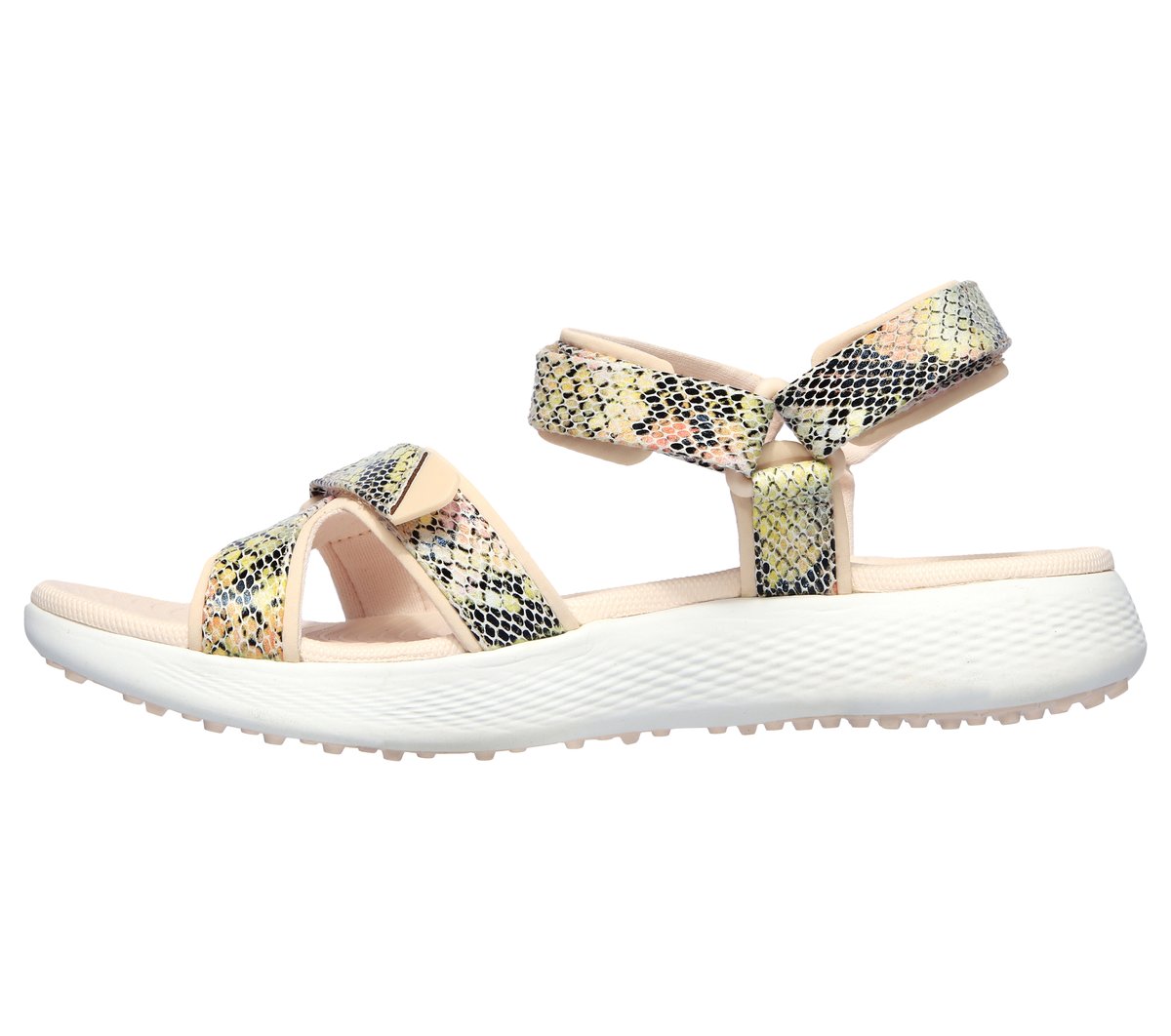 Warm weather play gets stylish and comfortable with the Skechers GO GOLF 600 – Charms sandal. This casual sandal features snake-textured straps with a Goga Max cushioned footbed and a golf-style spikeless TPU outsole for added stability.