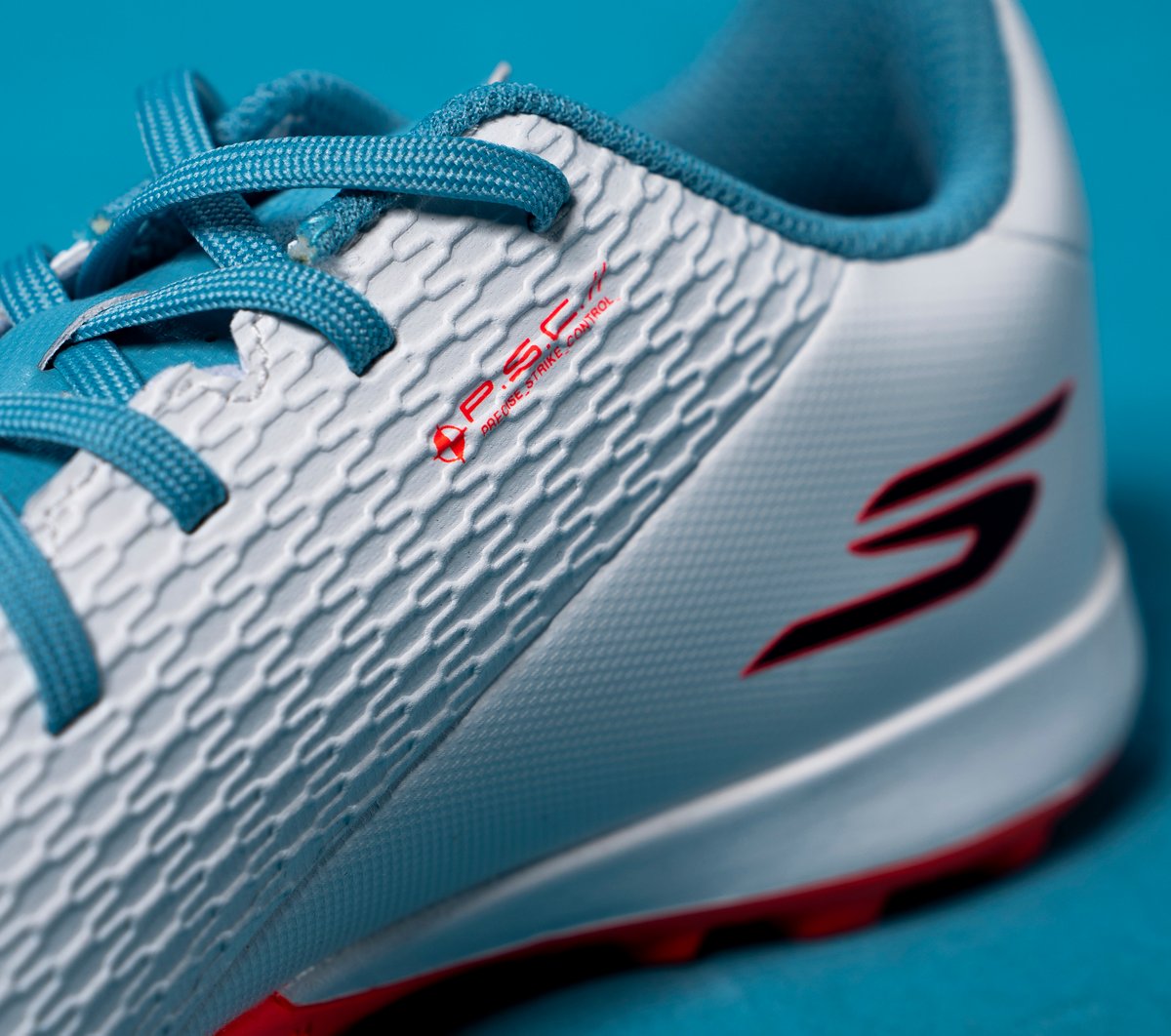 - P.S.C. – Precise Strike Control upper moulding detail engineered to assist with accurate ball control and striking