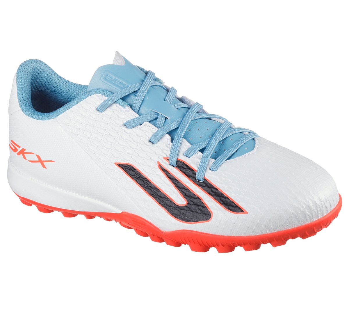Achieve ultimate comfort and precision on the pitch wearing Skechers Soccer™: SKX_2 JR Youth TF™. This lightweight turf boot features a soft upper with moulding engineered for precise ball control, a patterned rubber outsole supporting multi-directional grip and movement, plus an EVA sockliner for added comfort.