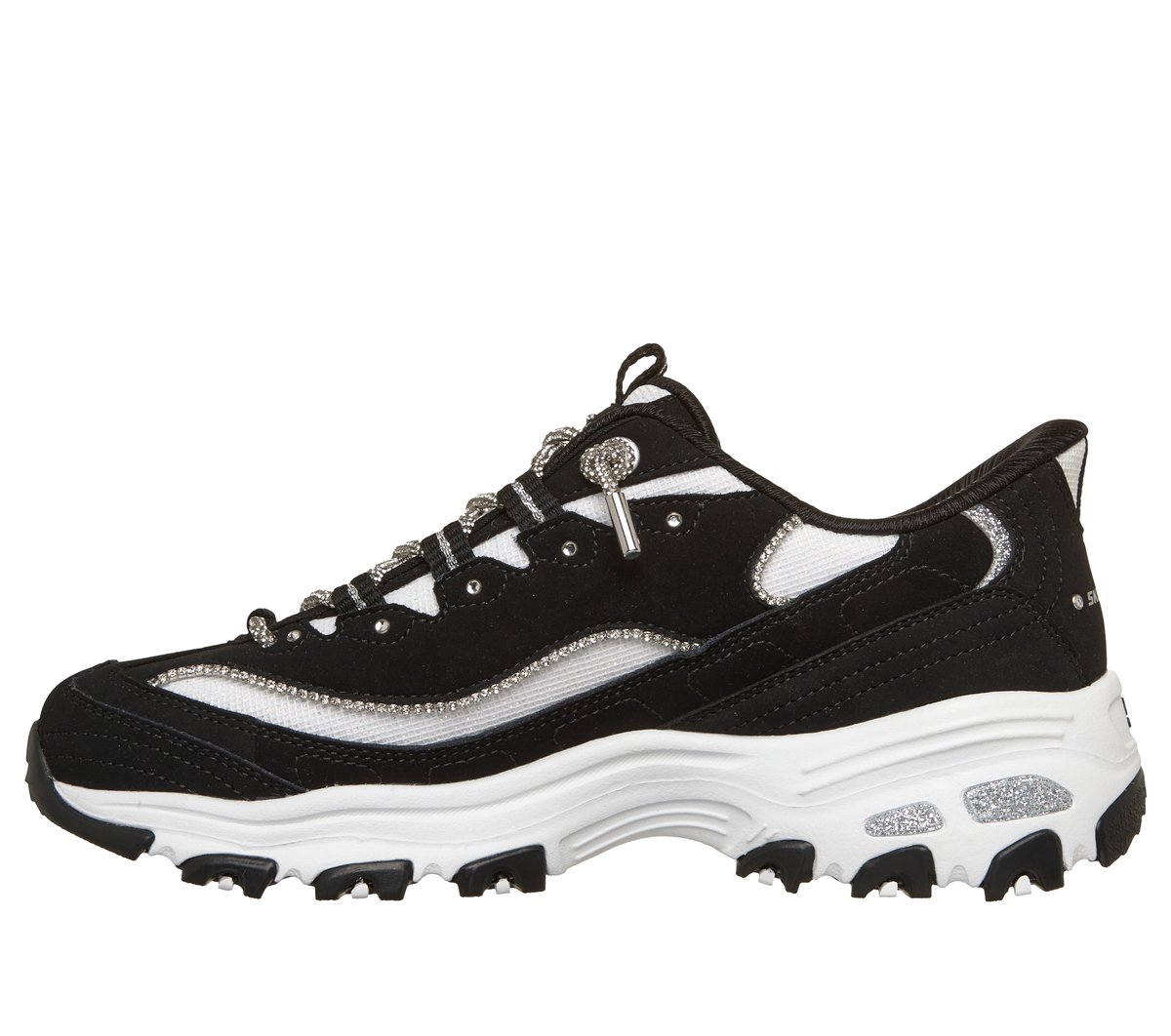 Bring some shine to the sporty style and comfort of Skechers Hands Free Slip-ins®: D’Lites® – Show Time. Designed with our Heel Pillow®, this iconic silhouette features a layered leather, synthetic, and mesh upper with tied-off stretch laces, rhinestone embellishments, and a cushioned Skechers Air-Cooled Memory Foam® insole.