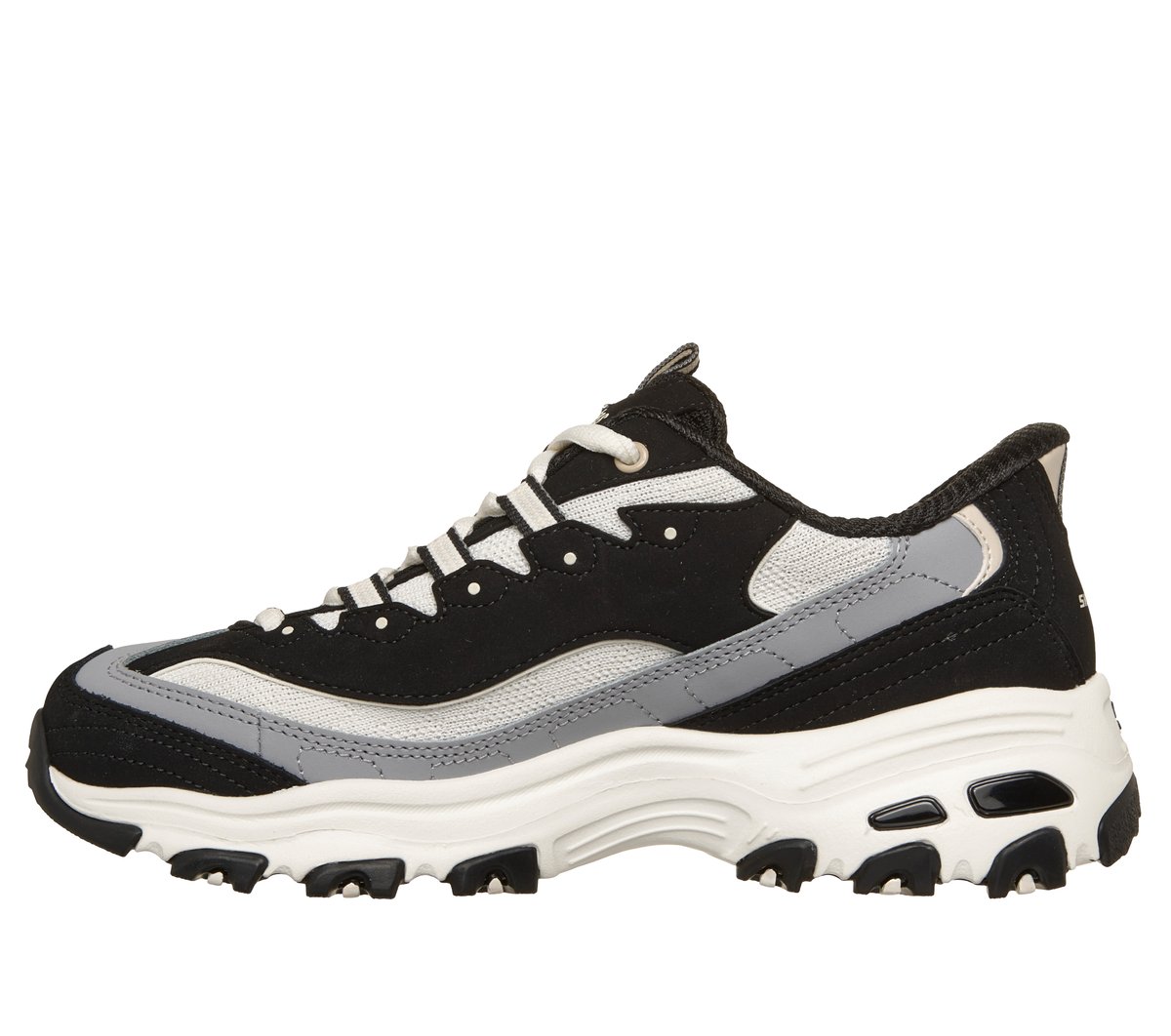 Step into sporty style and effortless comfort with Skechers Hands Free Slip-ins®: D’Lites® – Smooth Nostalgia. Designed with our Heel Pillow®, this classic sneaker silhouette features a layered leather, mesh, and knit upper, lace-up front with ticking-striped lacing tabs, plus a cushioned Skechers Air-Cooled Memory Foam® insole.