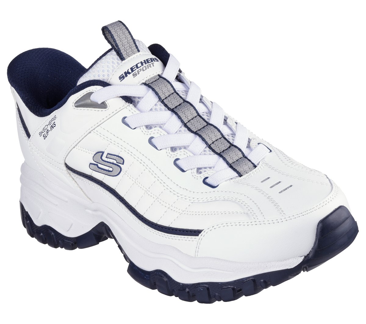 Experience the ultimate in easy-wearing comfort wearing Skechers Hands Free Slip-ins®: E’Lite Afterburn – Grill Corporal. Designed with our Heel Pillow®, this classic athletic style features a leather and synthetic upper with stretch laces and a cushioned Skechers Air-Cooled Memory Foam® insole.