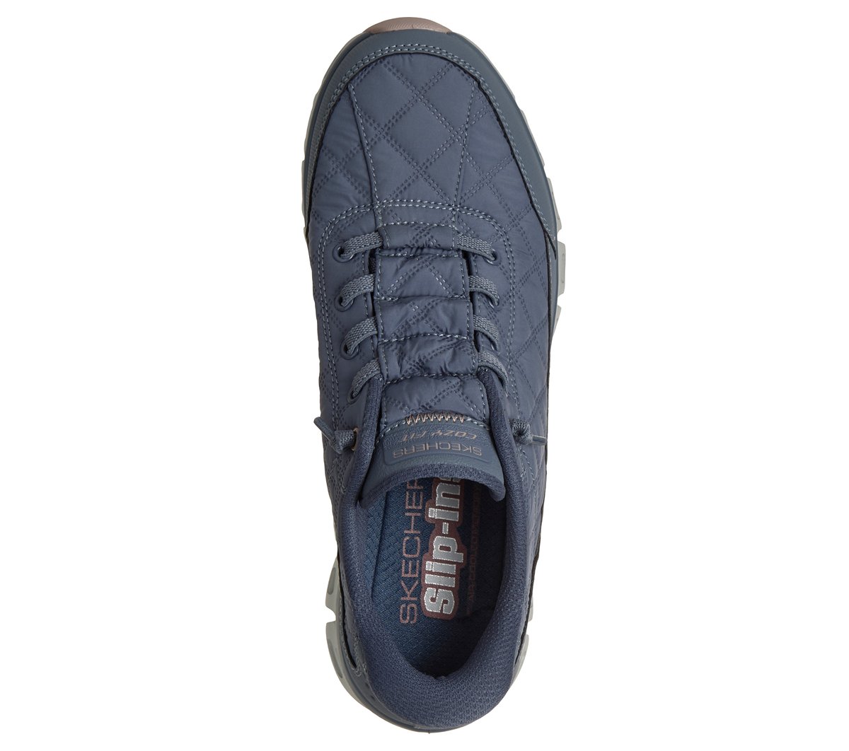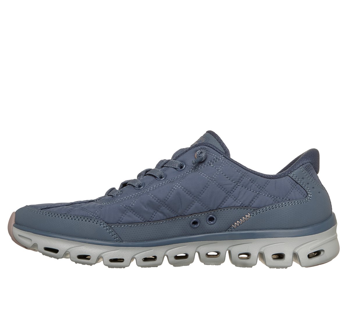 Cozy into effortless, flexible comfort with Skechers Hands Free Slip-ins®: Glide-Step® – Cozy Fit® At Ease. Designed with our Heel Pillow®, this casual vegan slip-on features an air-quilted fabric and duraleather upper with tied-off stretch laces, a Skechers Air-Cooled Memory Foam® insole, and a super flexible Glide-Step® geometric midsole.