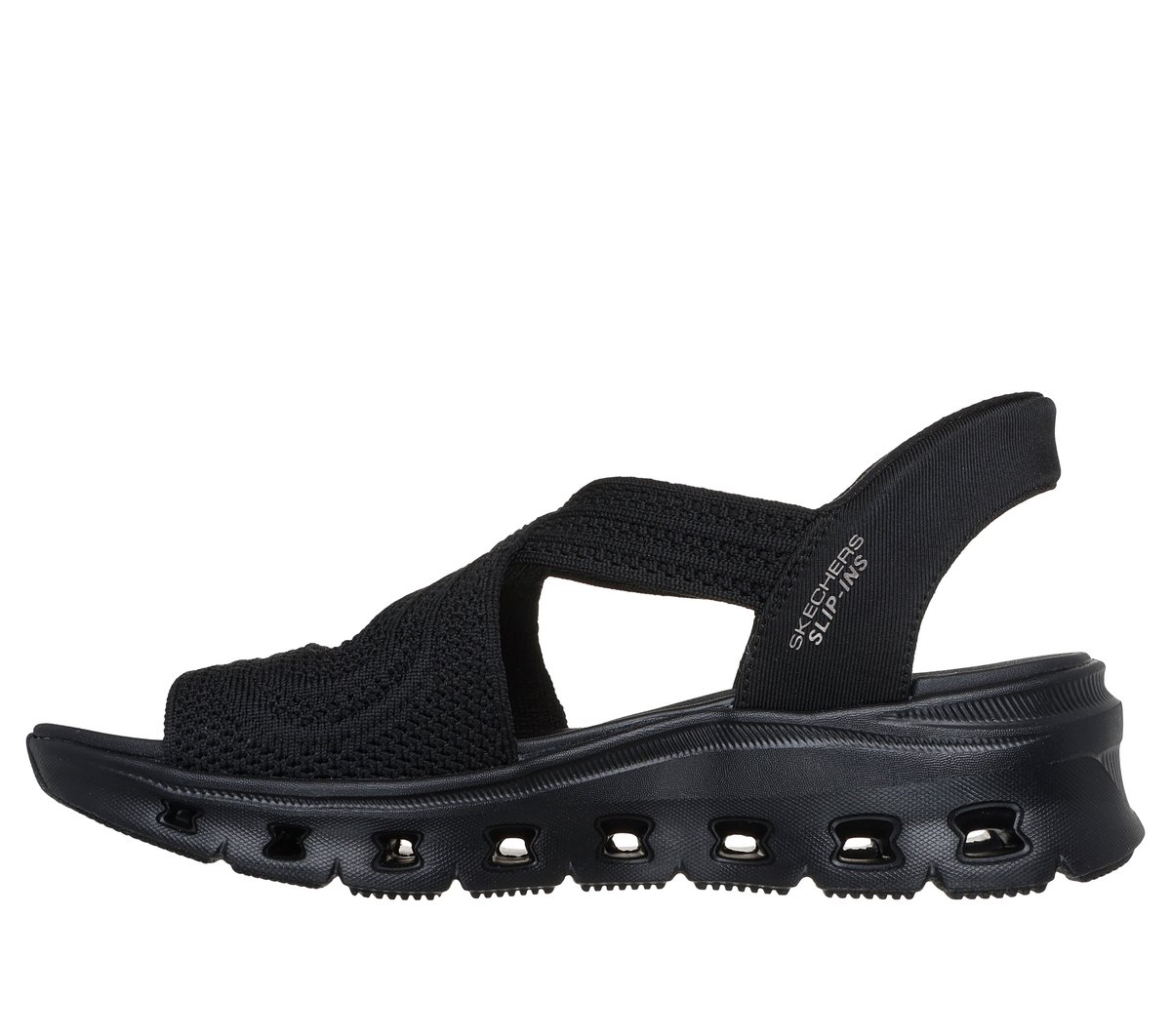 Enjoy sunny days in the stylish comfort of Skechers Hands Free Slip-ins®: Glide-Step® – Everyday Glide. Designed with our Heel Pillow®, this casual sandal features a knit upper with a Skechers Hands Free Slip-ins® slingback heel, a cushioned Yoga Foam® footbed, and a Glide-Step® geometric cushioned midsole.