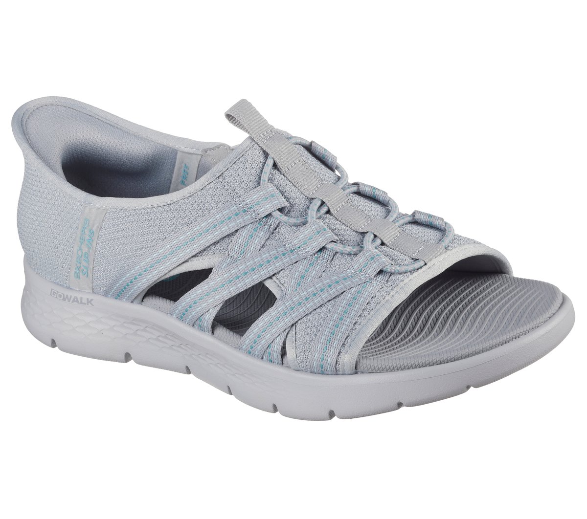 Experience an effortless way to wear your favorite sport sandal with Skechers Hands Free Slip-ins®: GO WALK Flex™ Sandal – Sadie. Designed with our Heel Pillow®, this slip-on sandal features a mesh and webbed upper with a back heel piece, contoured Goga Mat® footbed, and lightweight ULTRA GO® cushioning.