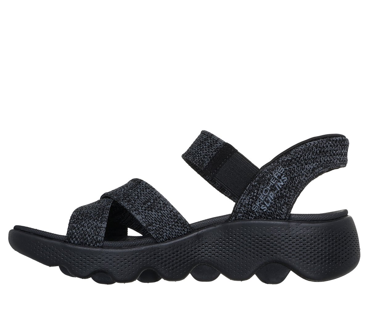 Enjoy convenient style and supreme massaging comfort with Skechers Hands Free Slip-ins®: GO WALK® Massage Fit® Sandal – Heather. Designed with our Heel Pillow®, this innovative slip-on sandal features a strappy heathered knit upper, responsive HYPER BURST® cushioning, a contoured Goga Mat® footbed with Arch Comfort® for added support, and our unique Massage Fit® technology that gently massages your foot with every step.