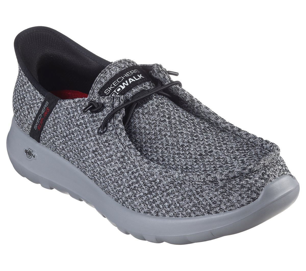 Step up your routine with easygoing comfort wearing Skechers Hands Free Slip-ins®: GO WALK® Max – Halcyon. Designed with our Heel Pillow®, this moc toe style features a two-toned yardage knit upper with a cushioned Skechers Air-Cooled Memory Foam® insole and lightweight 5-GEN® cushioning.