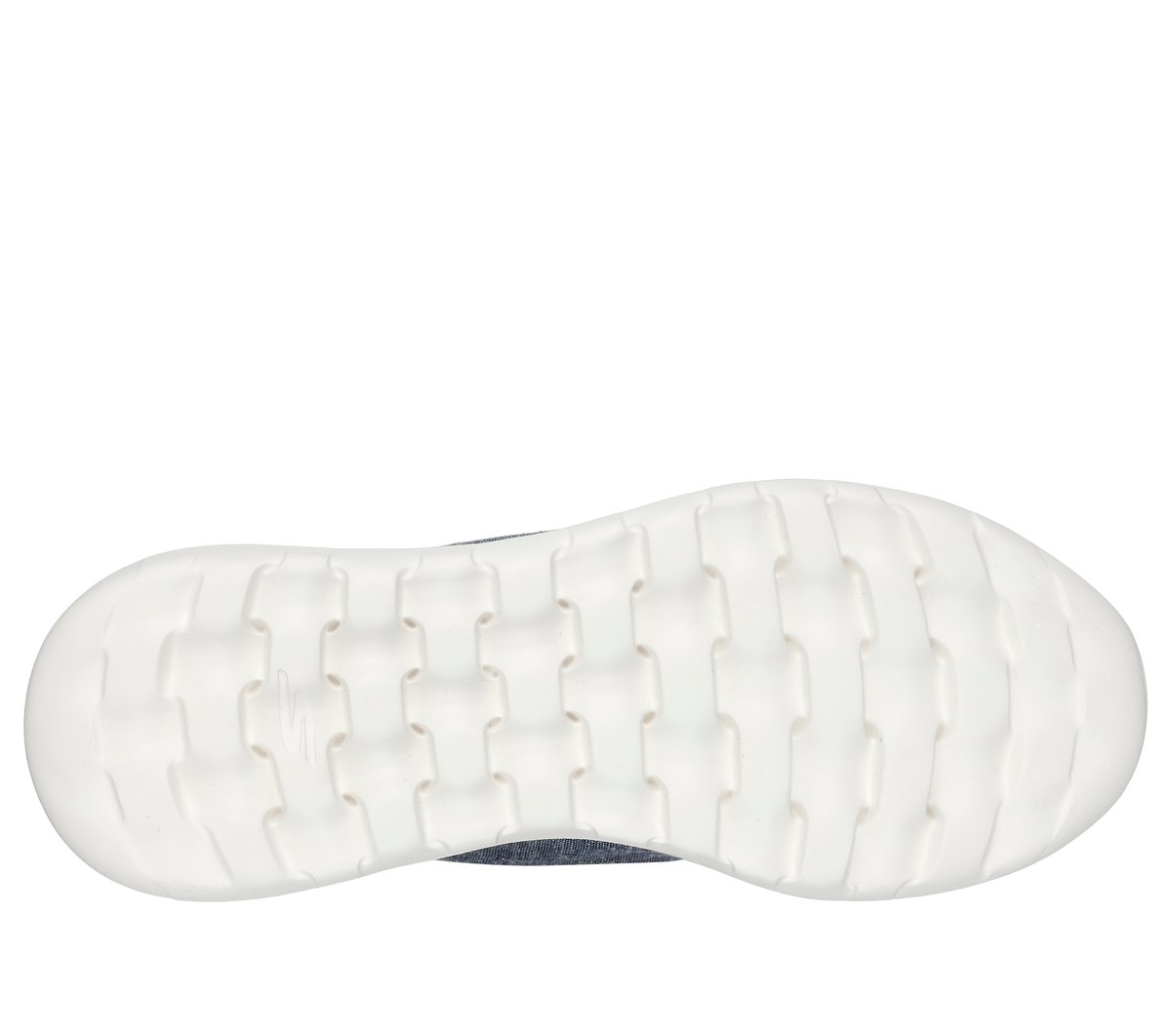 Step up your routine with easygoing comfort wearing Skechers Hands Free Slip-ins®: GO WALK® Max – With Ease. Designed with our Heel Pillow®, this moc toe style features a woven upper with printed lining, tied-off deco laces, a cushioned Skechers Air-Cooled Memory Foam® insole, and lightweight 5-GEN® cushioning.