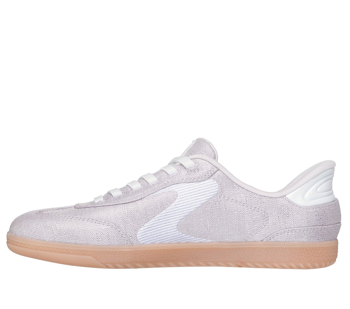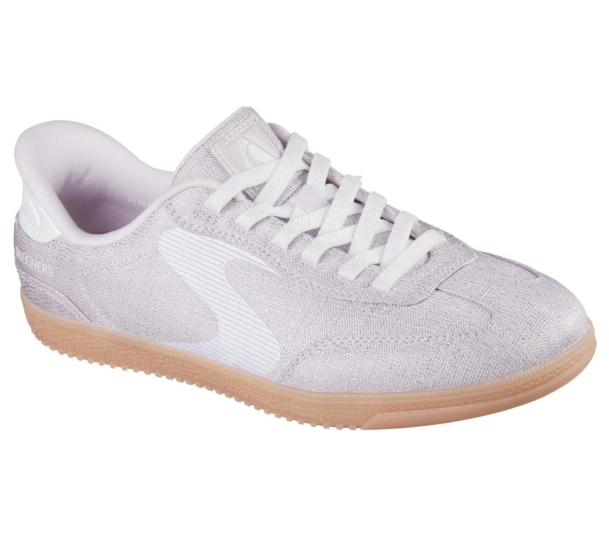 A modern classic meets easy-wearing comfort in Skechers Hands Free Slip-ins®: Hotshot – Radiant. Designed with our Heel Pillow®, this Court & Classics slip-on features a glitter woven upper with fixed stretch laces, striped ‘S’ quarter logo detail, and our signature Skechers Air-Cooled Memory Foam® cushioned insole.