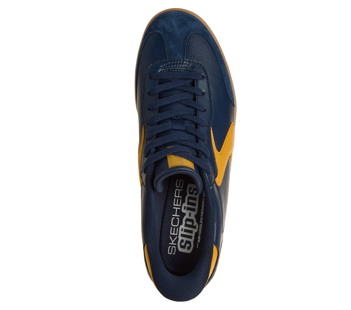 A modern classic meets easy-wearing comfort in Skechers Hands Free Slip-ins®: Hotshot – Relegate. Designed with our Heel Pillow®, this Court & Classics slip-on features a duraleather and pigskin suede overlay upper with adjustable laces, ‘S’ quarter logo detail, and our signature Skechers Air-Cooled Memory Foam® cushioned insole.