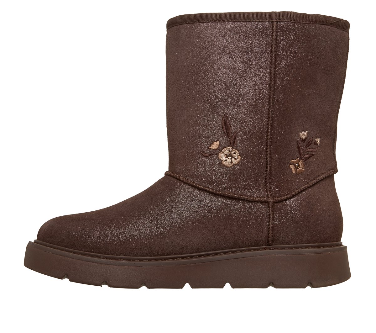 • Shimmer suede upper with floral embroidery and plush wool lining