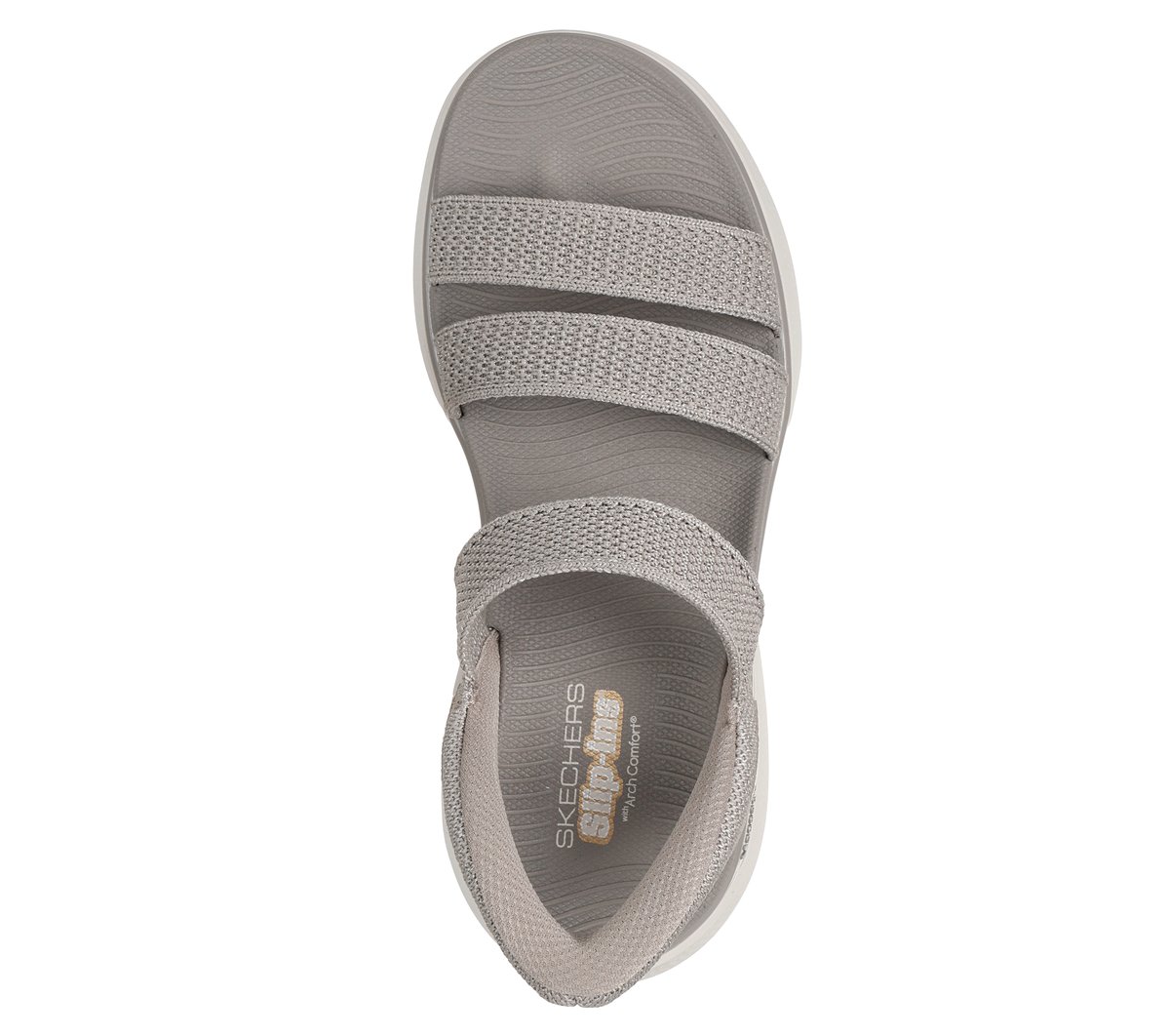 Make every step count for incomparable comfort and summery style with Skechers Hands Free Slip-ins®: Massage Fit Edge – Wren. Designed with our Heel Pillow®, this vegan quarter strap sandal features a strappy knit upper, a contoured Goga Mat® footbed with Arch Comfort® for added support, a Skechers Hands Free Slip-ins® back heel, and our unique Massage Fit™ midsole that massages your foot with every step.