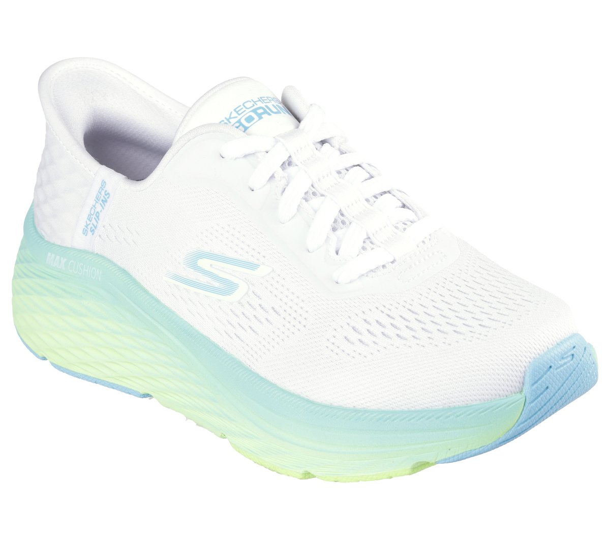 HANDS FREE SLIP-INS™ Experience the next movement in maximum cushioning with Skechers Hands Free Slip-ins®: Max Cushioning Elite™ 2.0 – Solace. Designed with our Heel Pillow®, this running design features an engineered mesh upper, adjustable laces, a copper-infused Skechers Air-Cooled Memory Foam® insole, and lightweight ULTRA GO® cushioning.