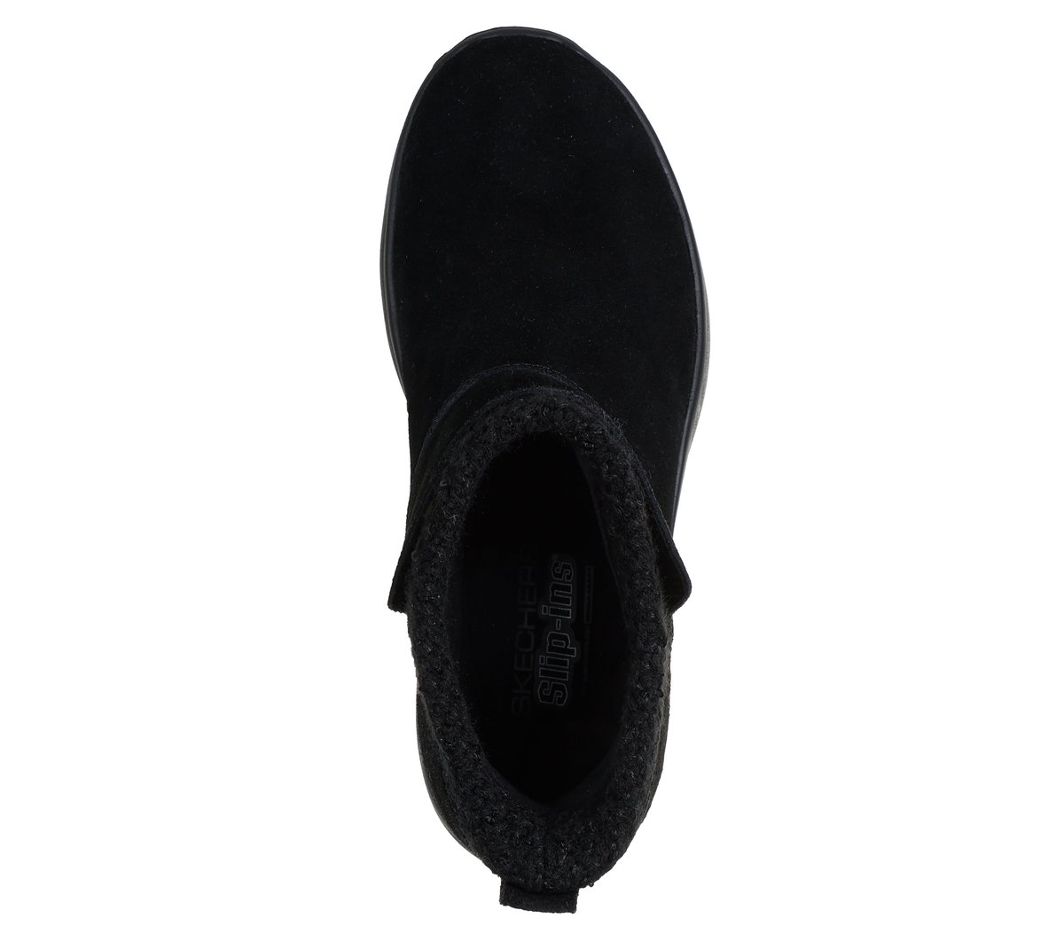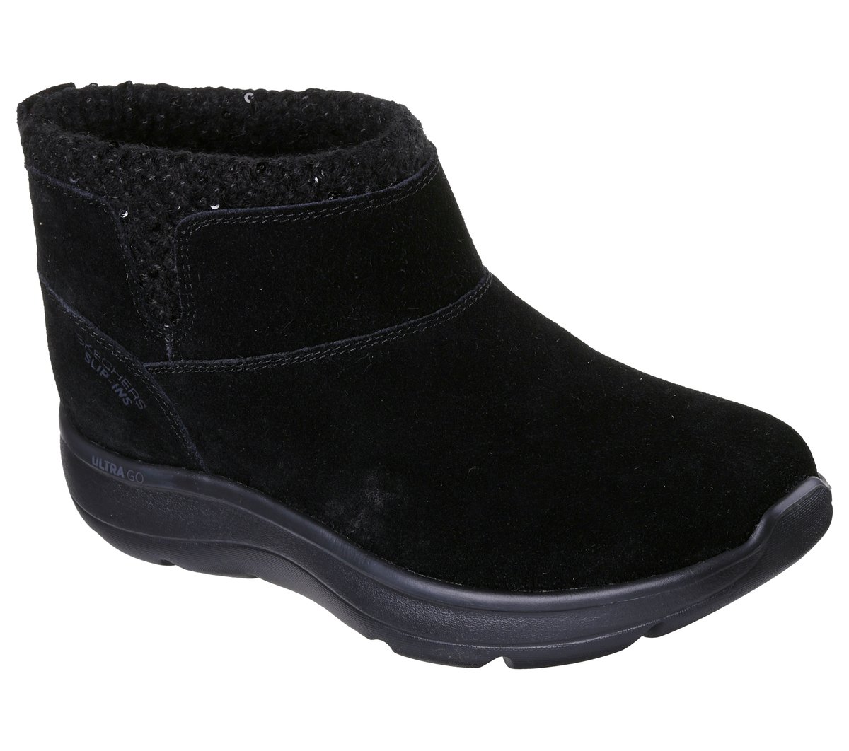 Keep your toes nice and cozy in premium quality style wearing Skechers Hands Free Slip-ins®: On-the-GO® Encore – Adriana. Designed with our Heel Pillow®, this casual low-top boot features a 3M® Scotchgard® treated genuine suede upper with sequin-knit detail, ULTRA GO® cushioning, and a Skechers Air-Cooled Goga Mat™ insole.