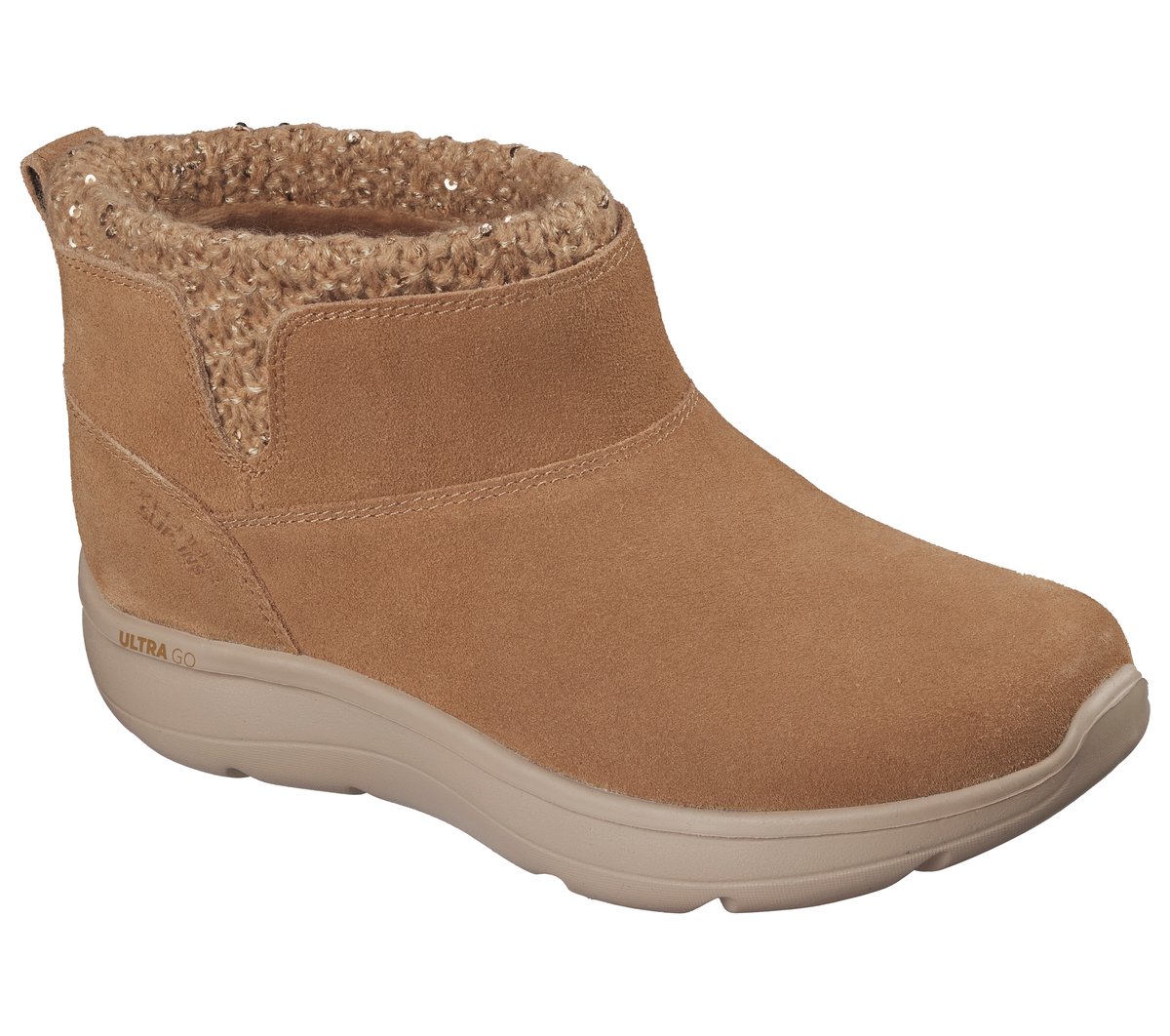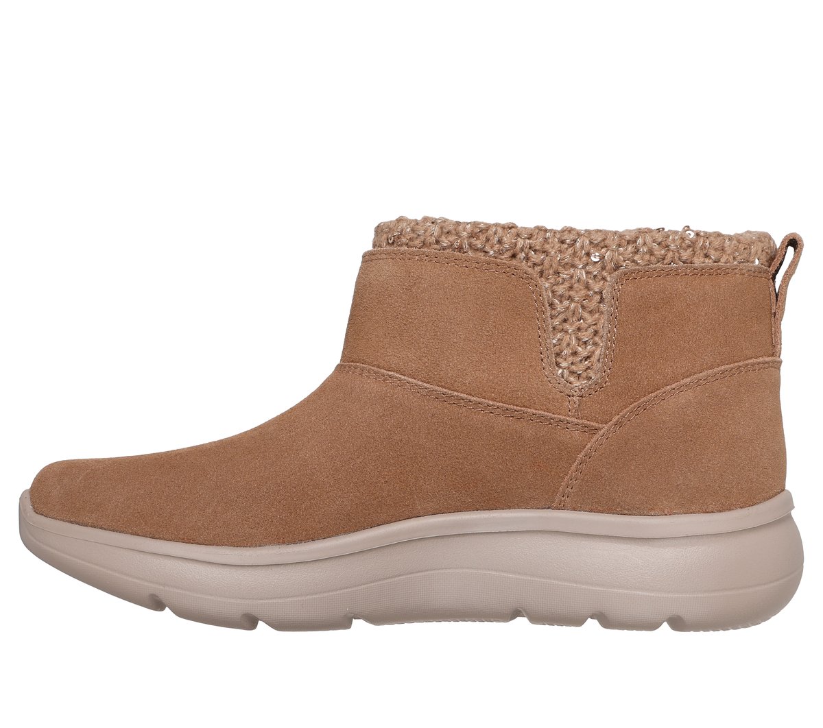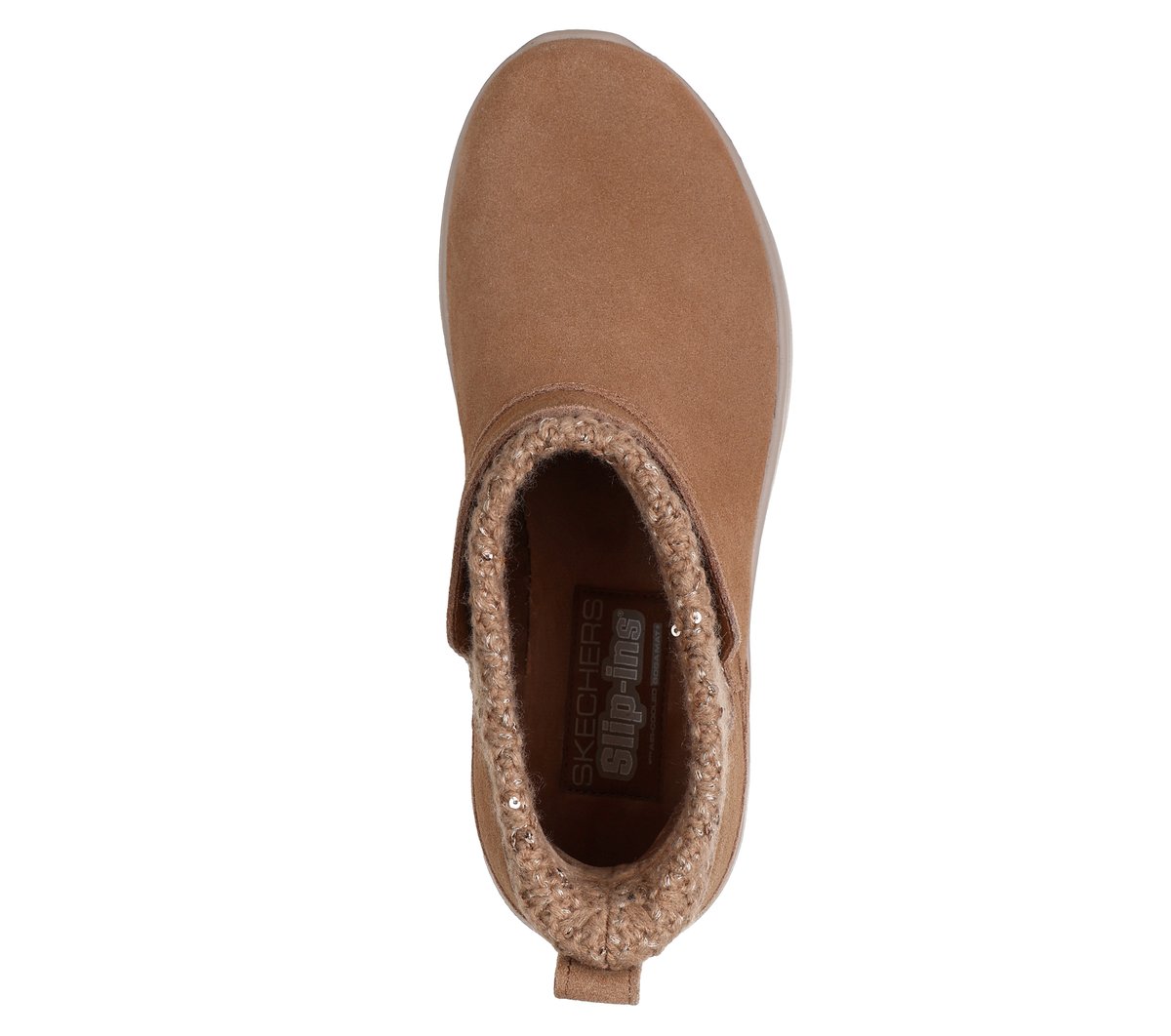 Keep your toes nice and cozy in premium quality style wearing Skechers Hands Free Slip-ins®: On-the-GO® Encore – Adriana. Designed with our Heel Pillow®, this casual low-top boot features a 3M® Scotchgard® treated genuine suede upper with sequin-knit detail, ULTRA GO® cushioning, and a Skechers Air-Cooled Goga Mat™ insole.