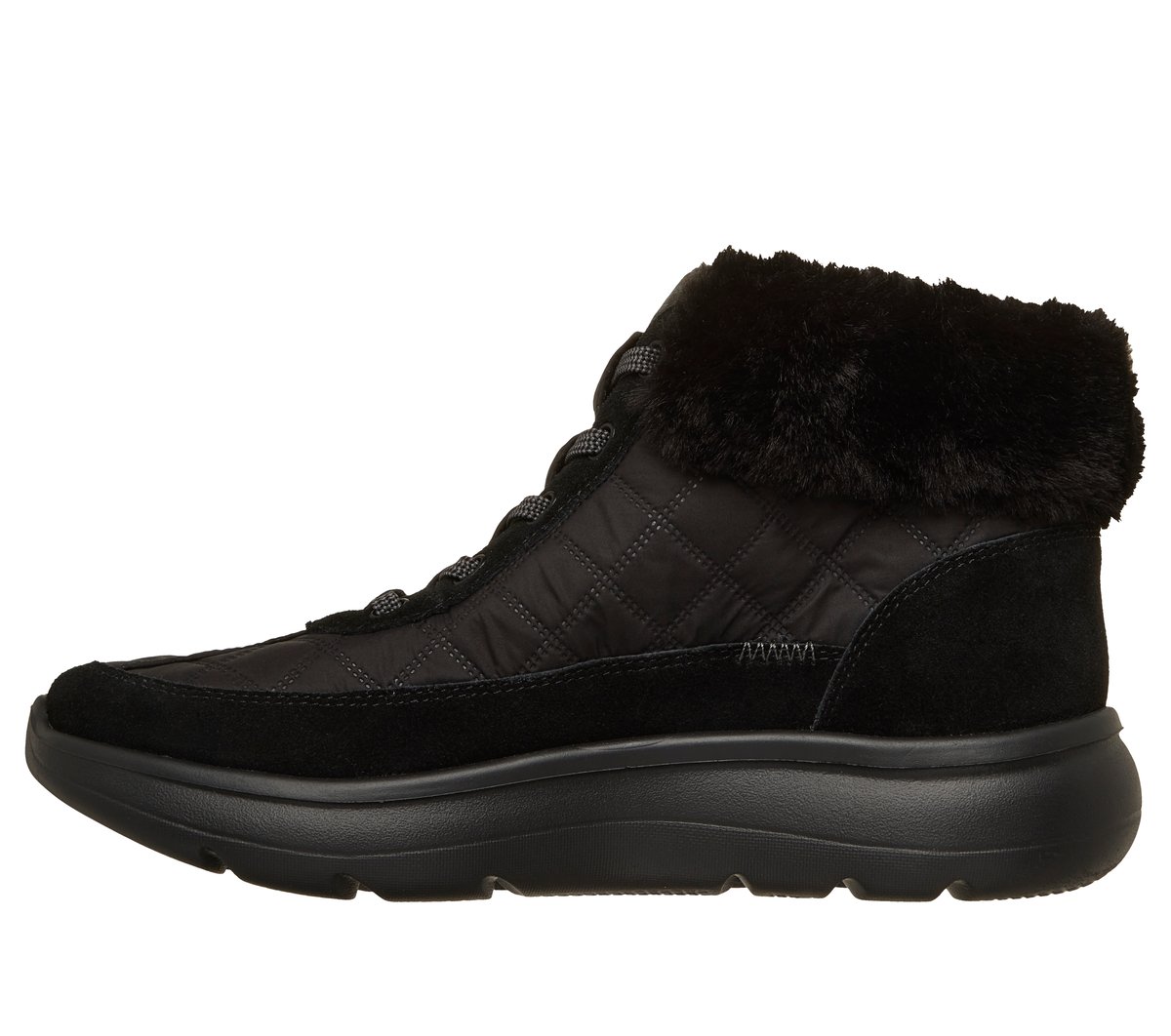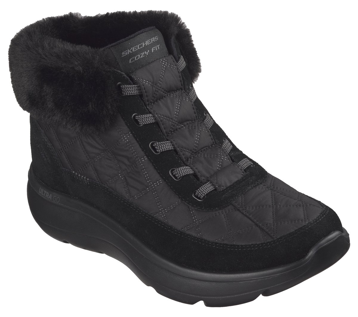 Embrace cold-weather season with effortless style and comfort wearing Skechers Hands Free Slip-ins®: On-the-GO® Encore – Cozy Fit® Maisie. Designed with our Heel Pillow®, this 3M® Scotchgard®-treated mid-top bootie features an air-quilted mesh and suede upper with fixed stretch laces, a faux fur collar, soft chenille lining, a Skechers Air-Cooled Goga Mat™ insole, and lightweight ULTRA GO® cushioning.