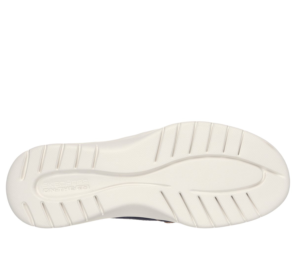 Step-in to convenient nautical comfort and cushioning wearing Skechers Hands Free Slip-ins® On-the-GO® Flex – Palmilla. This casual boat shoe style features a canvas and vegan leather upper, our Heel Pillow®, a Skechers Air-Cooled Memory Foam® insole, lightweight ULTRA GO® cushioning, and a hands-free molded heel panel.