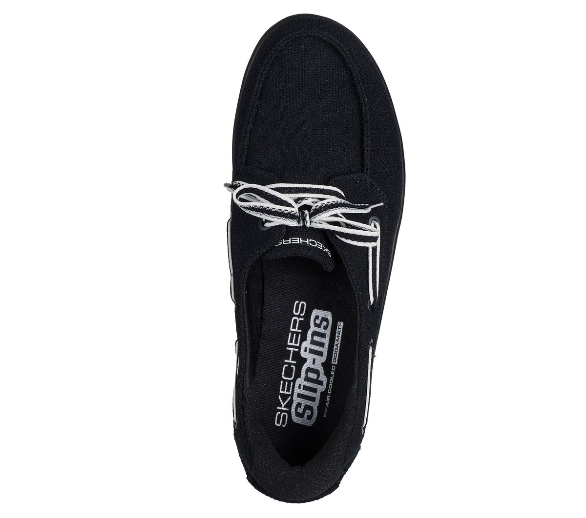 Sail through the day in stylish comfort wearing Skechers Hands Free Slip-ins®: On-the-GO® Flex Radiant – Catalina. Designed with our Heel Pillow®, this vegan slip-on features a knit upper with decorative laces, a high-rebound Skechers Air-Cooled Goga Mat™ insole, and lightweight ULTRA GO® cushioning.