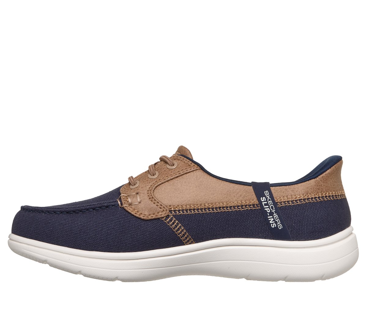 Get on board with the stylish comfort of Skechers On-the-GO® Flex Radiant – Sandy. This casual vegan boat style features a canvas and faux leather upper with fixed stretch laces, high-rebound Skechers Air-Cooled Goga Mat™ insole, and lightweight ULTRA GO® cushioning.