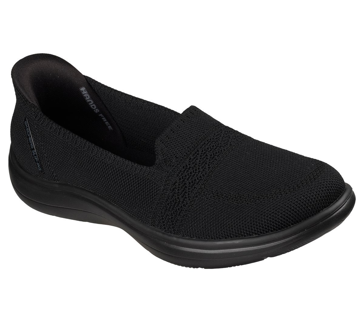Stylish and versatile comfort combine in Skechers Hands Free Slip-ins®: On-the-GO® Flex Radiant – Sloane. Designed with our Heel Pillow®, this vegan skimmer features a textured knit upper in a laceless fit, a high-rebound Skechers Air-Cooled Goga Mat™ insole, and lightweight ULTRA GO® cushioning.