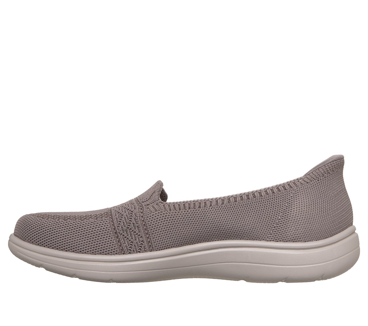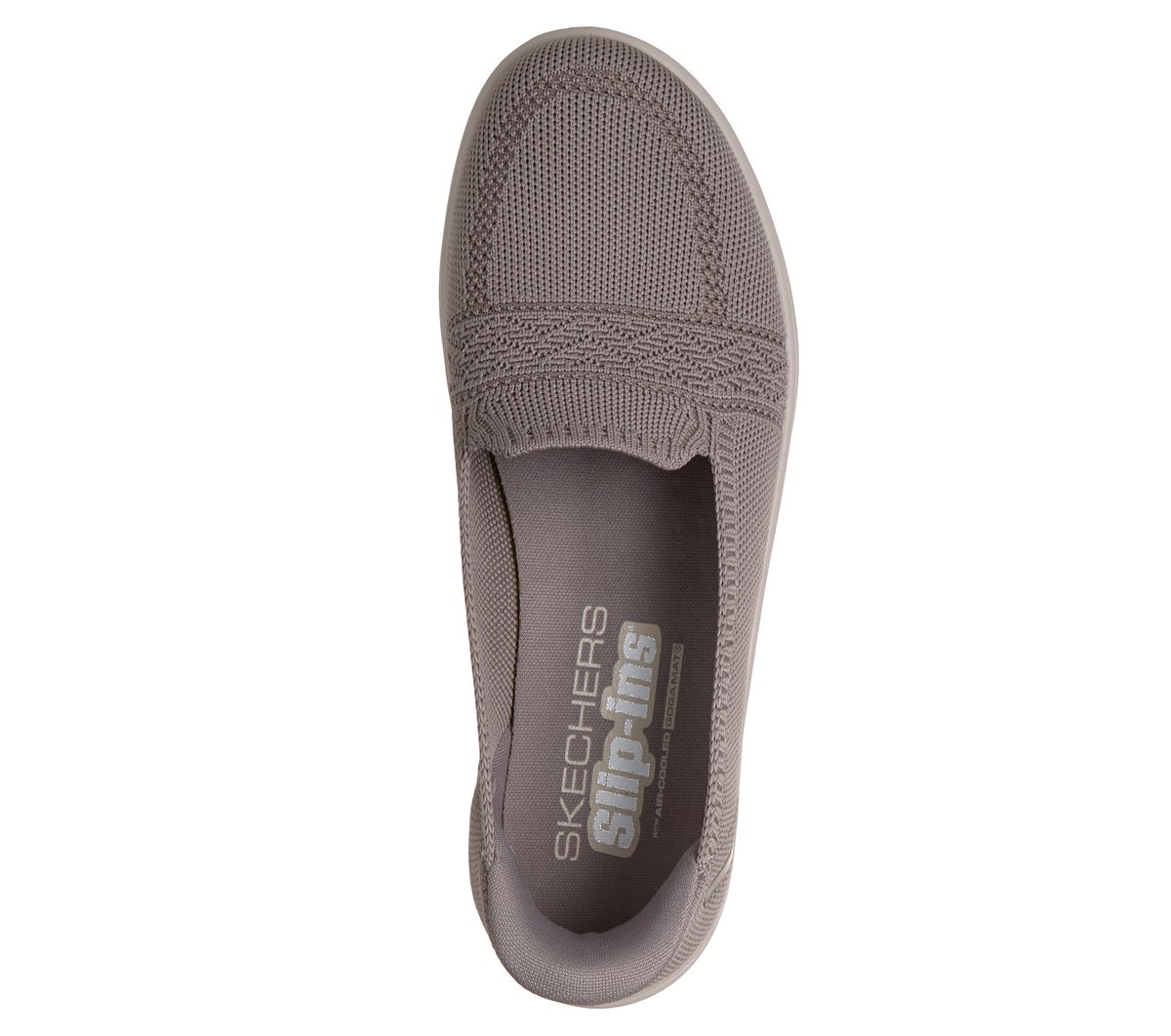 Stylish and versatile comfort combine in Skechers Hands Free Slip-ins®: On-the-GO® Flex Radiant – Sloane. Designed with our Heel Pillow®, this vegan skimmer features a textured knit upper in a laceless fit, a high-rebound Skechers Air-Cooled Goga Mat™ insole, and lightweight ULTRA GO® cushioning.