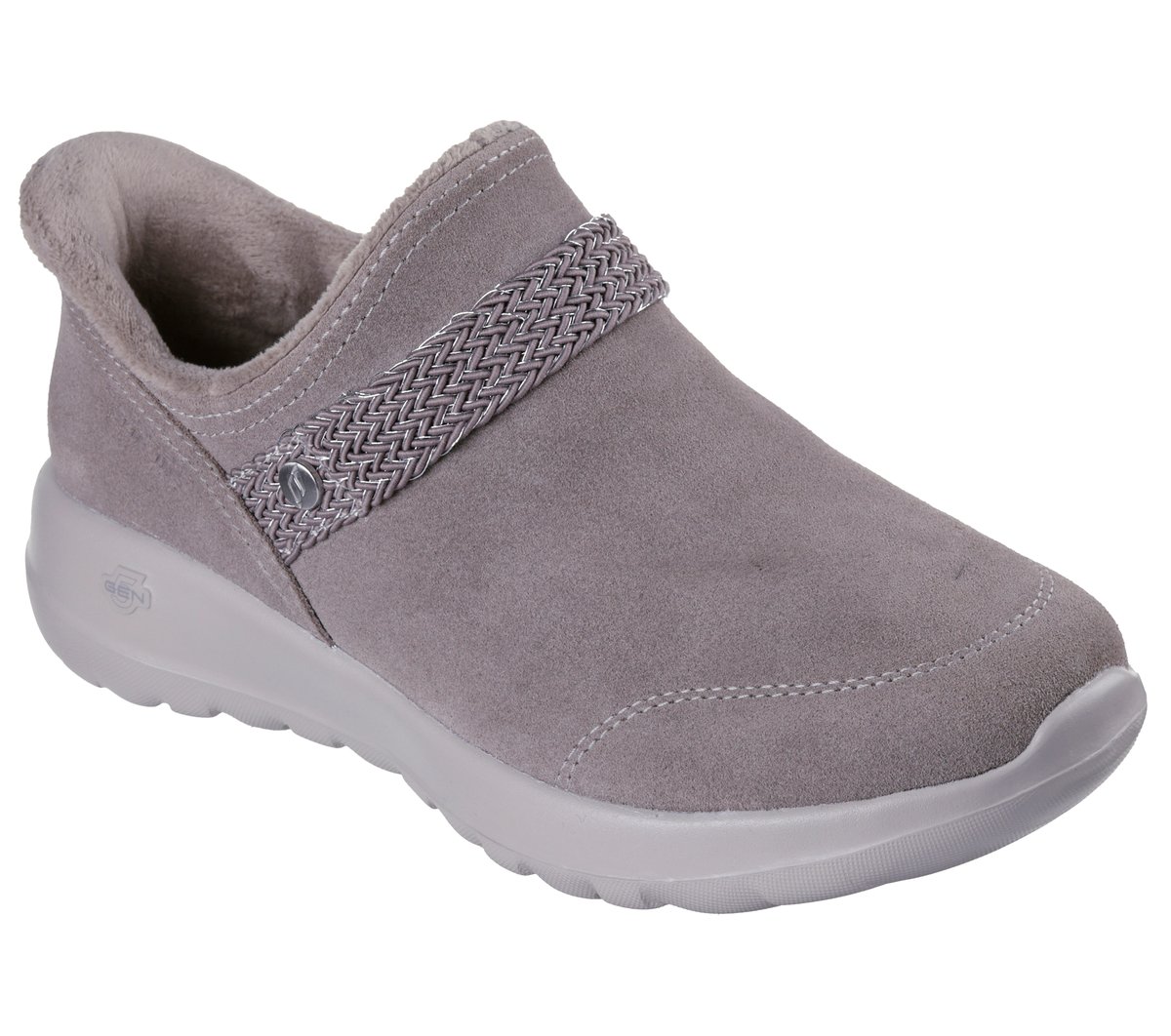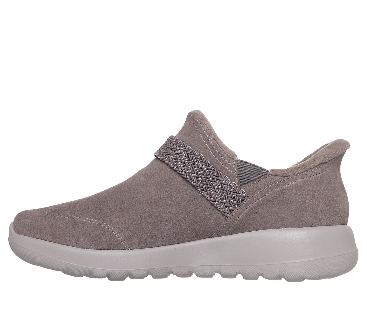 Spend the season in warm comfort and chill style wearing Skechers Hands Free Slip-ins®: On-the-GO Joy™ – Brandie. This indoor/outdoor lounge design features a 3M® Scotchgard®-treated suede upper with braided instep detail, soft chenille lining, an Air-Cooled Memory Foam® insole, and lightweight 5GEN® cushioning.