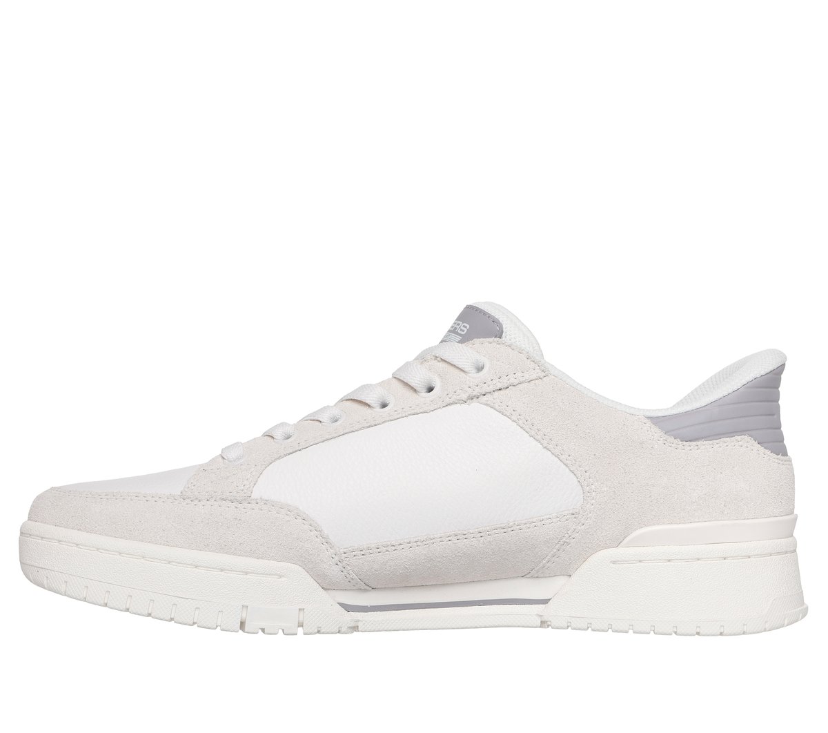 Serve up some serious style points in Skechers Hands Free Slip-ins®: Recoil – Persius. Designed with our Heel Pillow®, this court-style slip-on features a leather and suede overlay upper with fixed stretch laces and a cushioned Skechers Air-Cooled Memory Foam® insole.
