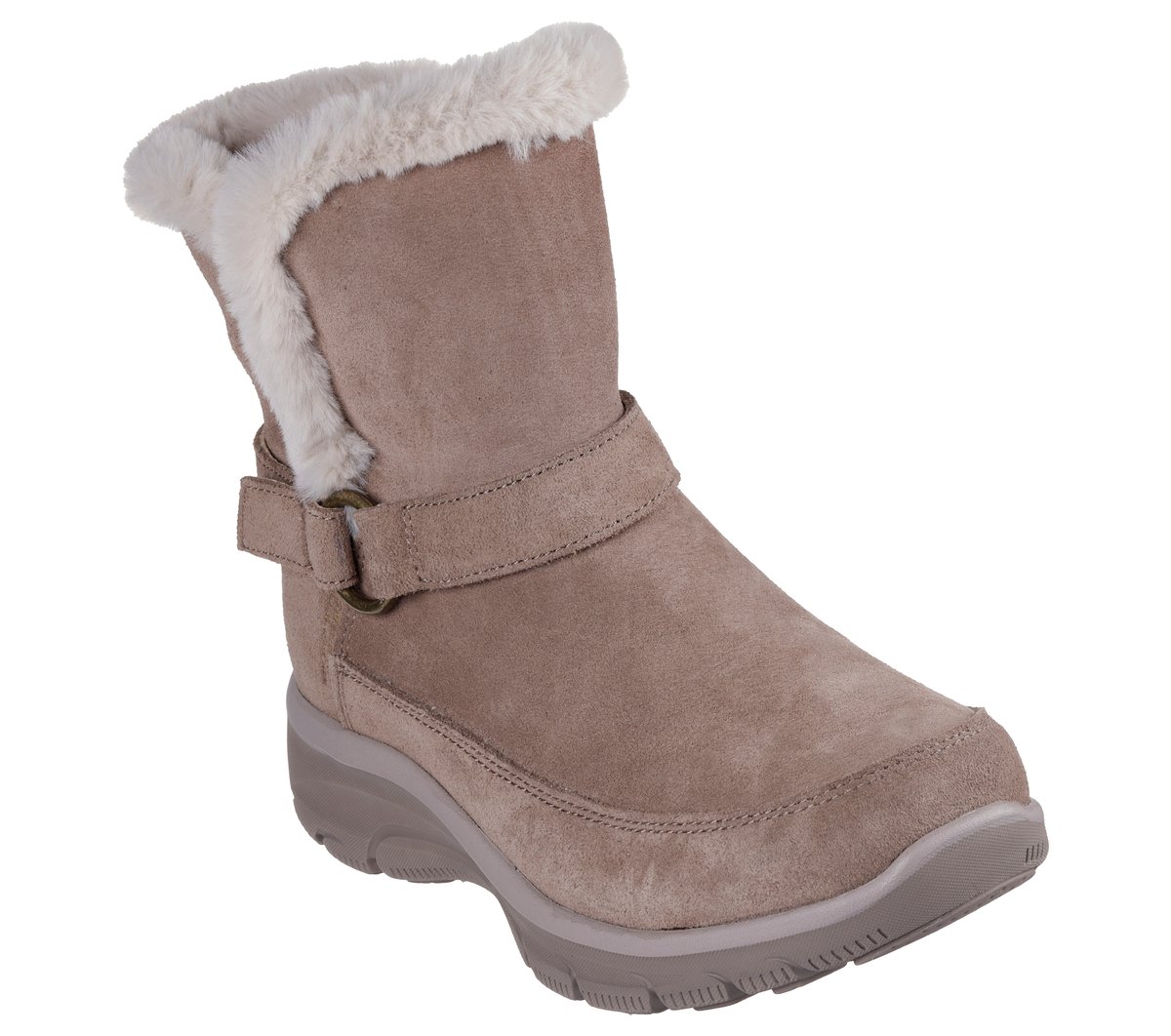 Simply step into the season with effortless cozy comfort wearing Skechers Hands Free Slip-ins® Relaxed Fit®: Easy Going – Dreamers Move. Designed with our Heel Pillow®, this boot features a 3M® Scotchgard® treated suede upper with faux fur trim and lining, wrapped buckle detail and a cushioned Skechers Air-Cooled Memory Foam® insole.
