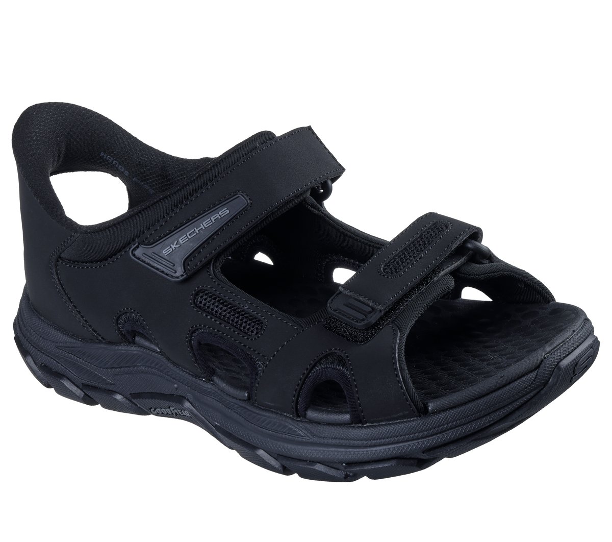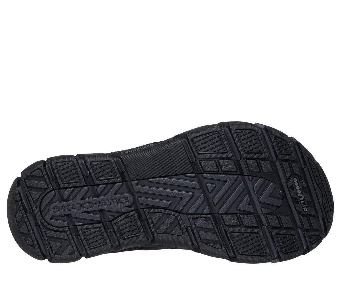 Step out in sturdy warm-weather style wearing Skechers Hands Free Slip-ins® Relaxed Fit®: Respected SD – Laredo. Designed with our Heel Pillow®, this open-toe slip-on sandal features a roomy synthetic and mesh upper with hook-and-loop closures, a cushioned Luxe Foam® footbed, and a Goodyear® Rubber Outsole with anti-slip traction under wet and dry conditions.