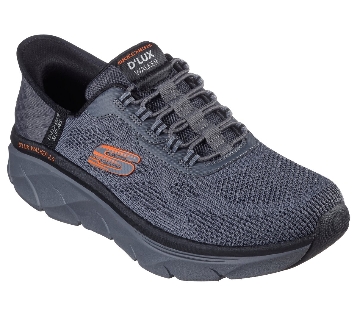 Enjoy longer walks with supportive comfort wearing Skechers Hands Free Slip-ins® Relaxed Fit®: D’Lux Walker 2.0 – Rezinate. Designed with our Heel Pillow®, this vegan walking design features an engineered knit and synthetic upper with stretch laces, well-cushioned midsole, and a Skechers Air-Cooled Memory Foam® comfort insole.
