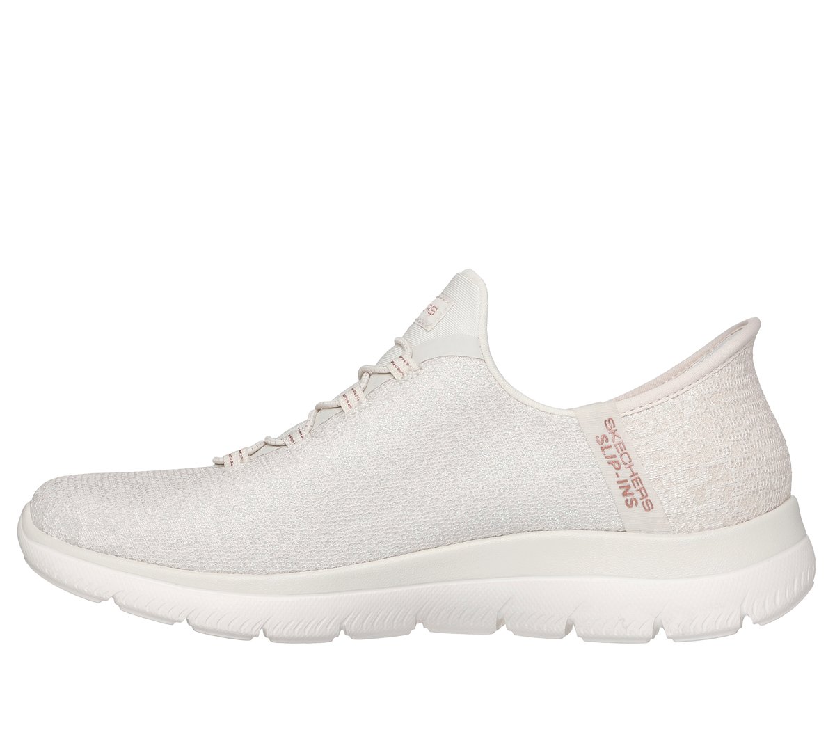 Add some shimmer to every step wearing Skechers Slip-ins®: Summits – Lunar Glow. Designed with our Heel Pillow®, this vegan slip-on features an iridescent mesh upper with fixed stretch laces and a cushioned Skechers Air-Cooled Memory Foam® comfort insole.
